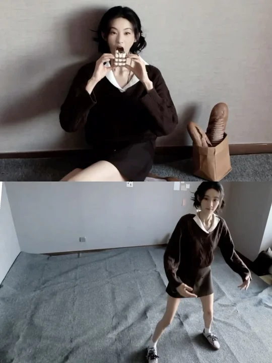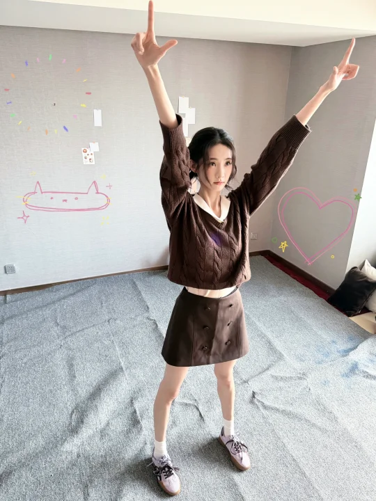 陈瑶秋日穿搭,咖啡色背心牛仔,轻曼时尚