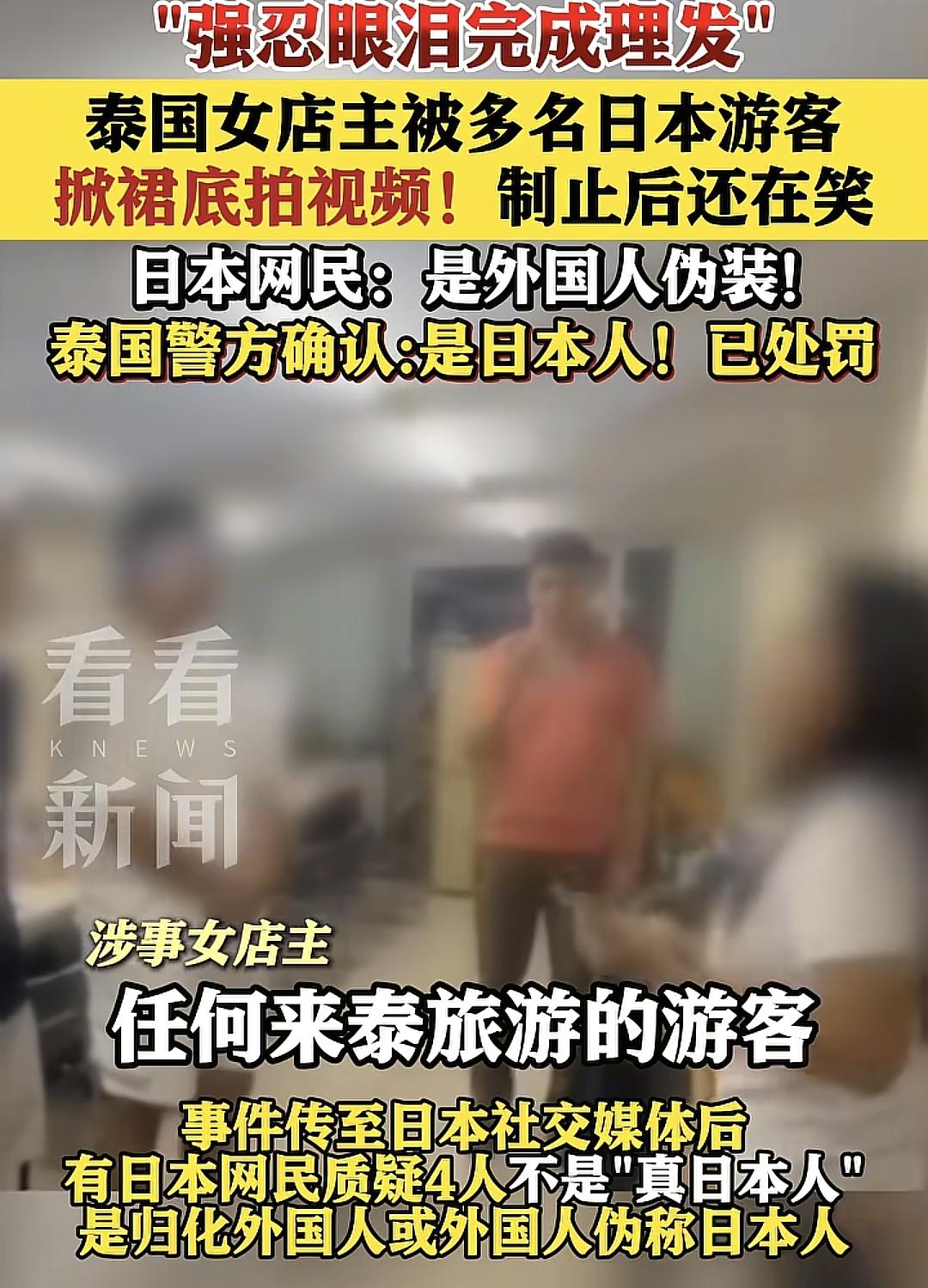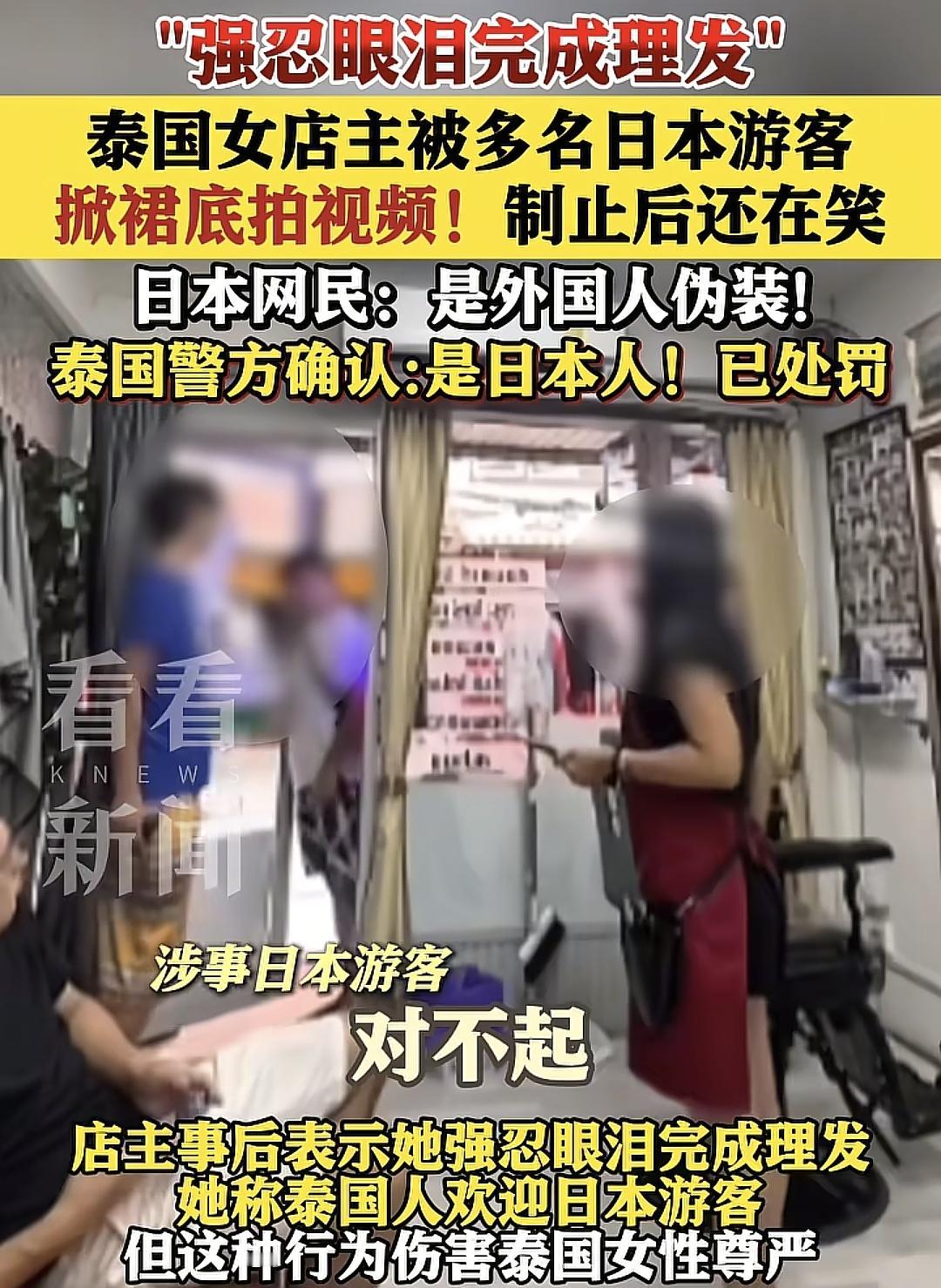 小日子真是走到哪都自带属性 泰国女店主被多名日本游客掀裙底拍视频,事发时这位泰国理发店老板娘正在帮客人理发,两名男子掀开人家的裙子,还用手机一直拍,老板娘制止他们,人家假装听不懂,还在那笑 视频在网络流出后,小日子网民还强词夺理,不敢认,这不是日本人,是外国人伪装的! 看到小日子说:是外国人伪装就想笑 大兄弟你们名声在外的,不用狡辩 对人泰国女人这么感兴趣,无非就是想看看人家到底是女人还是变性人对吧? 最绝的是人家被发现后装韩国人被识破了,泰警方直接通报就是日本人! 这事最后就鞠躬道歉解决了,话说拍的视频都删了吗?没删到时候又成小日子素材罗。 这女老板也大气,还欢迎他们去旅游,泰国欢迎你,果然大气,包容性强! 对于小日子还是网友们总结到位,世界上最“礼貌”的人和最变态的人。礼貌是真的,即使他马上要从背后叨你一下,他也会先向你鞠个躬 你们怎么看待日本游客?有遇到过这么离谱的吗?