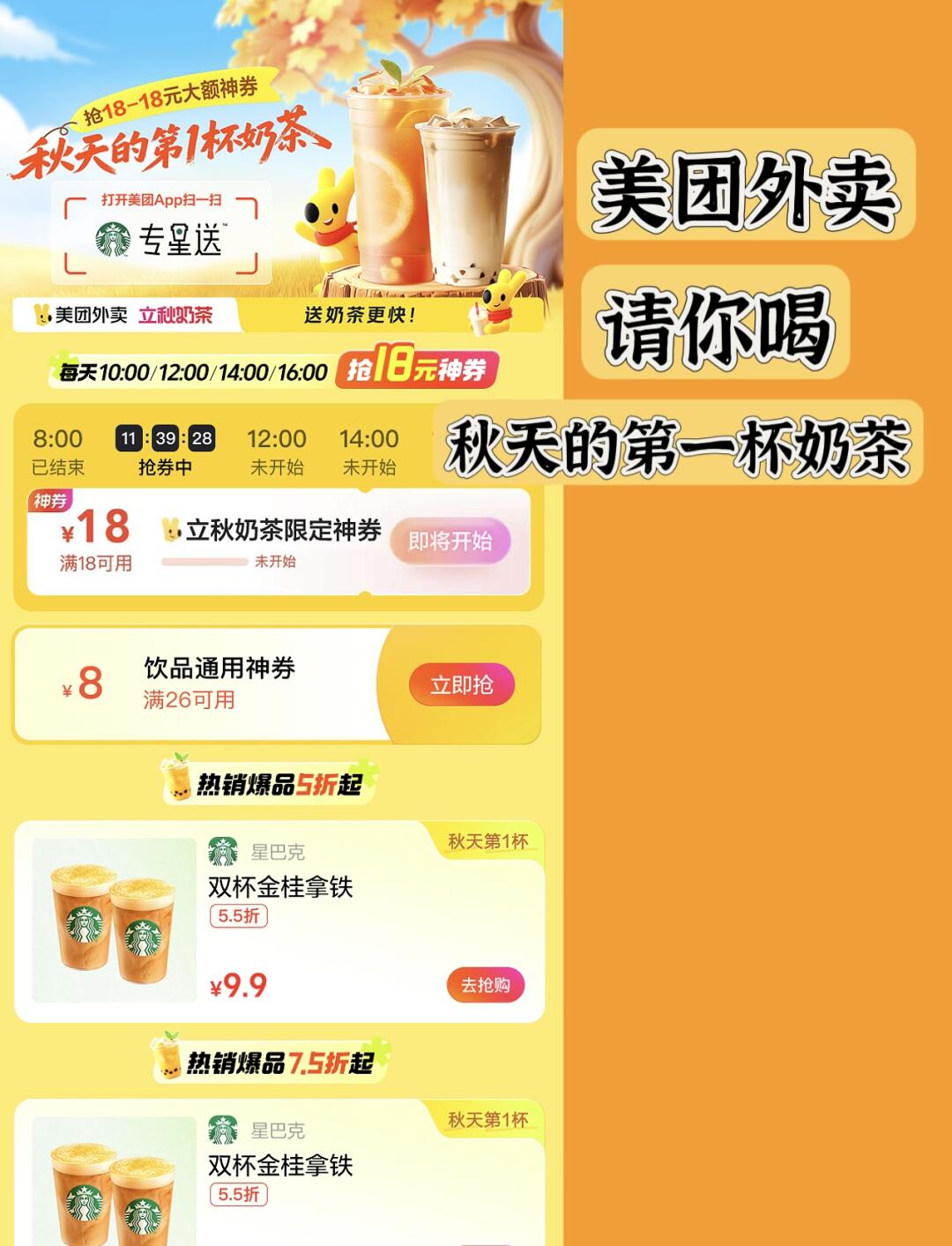 我还在心里酝酿一会儿的台词,按照我妈雁过拔毛的作风,如果我告诉她,8月1日-8月7日用美团App扫一扫饮品品牌logo,每天10:00/12:00/14:00/16:00都能抢限量 18-18元神券,请大家喝秋天的第一杯奶茶,她肯定会陷入兴奋,把衣服不见了的事儿彻底抛到脑后