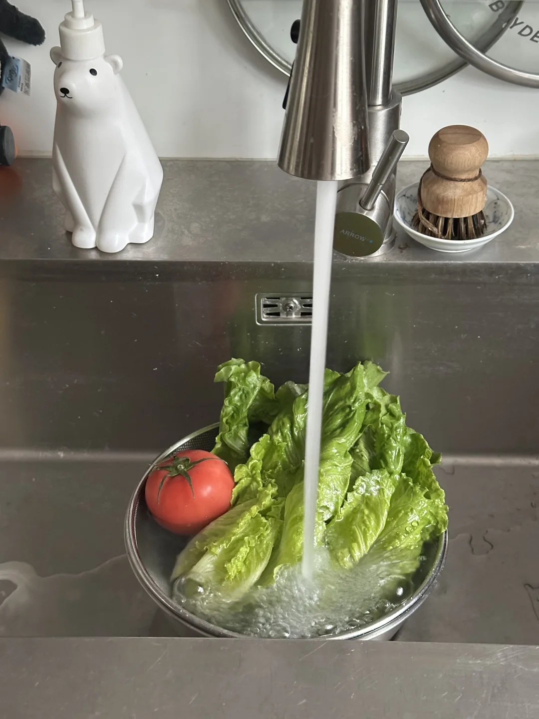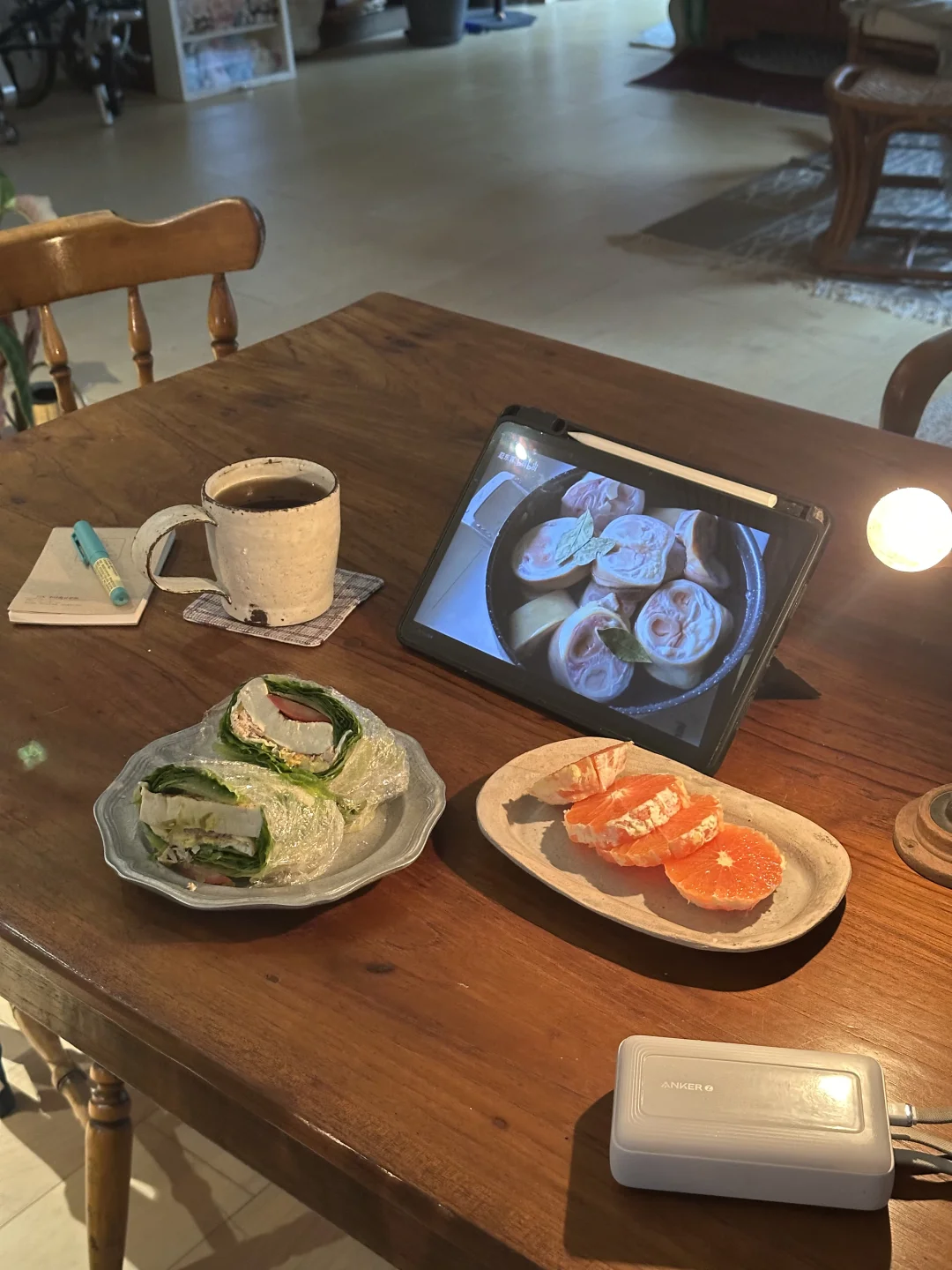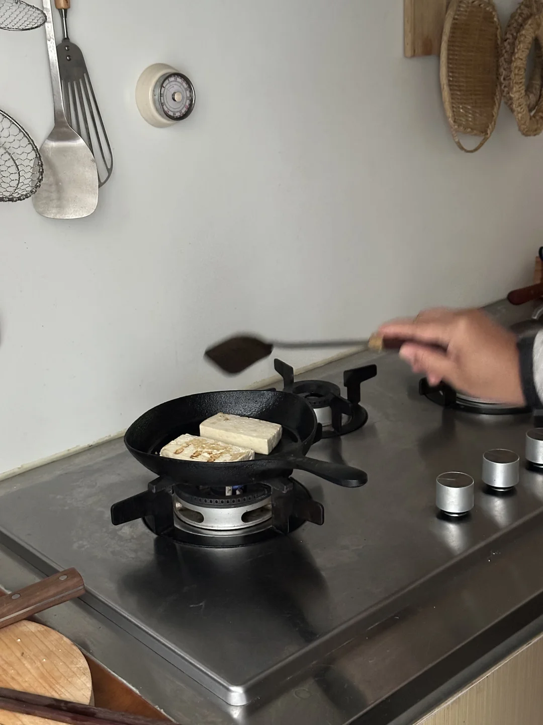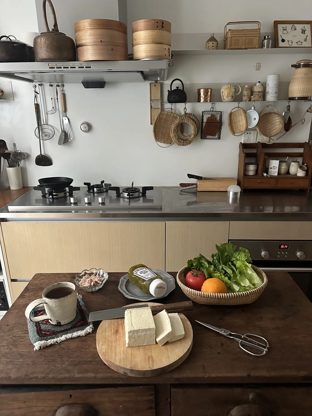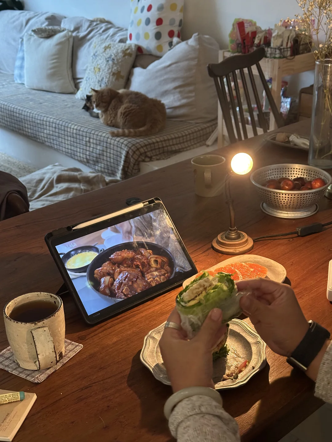尝试了一下生菜三明治, 内馅我放了自己爱吃的烧豆腐、煎蛋、金枪鱼、西红柿和酸黄瓜酱 接连的下雨天家里阴凉阴凉的 有烧豆腐和煎蛋的加入,整个三明治也是热乎乎