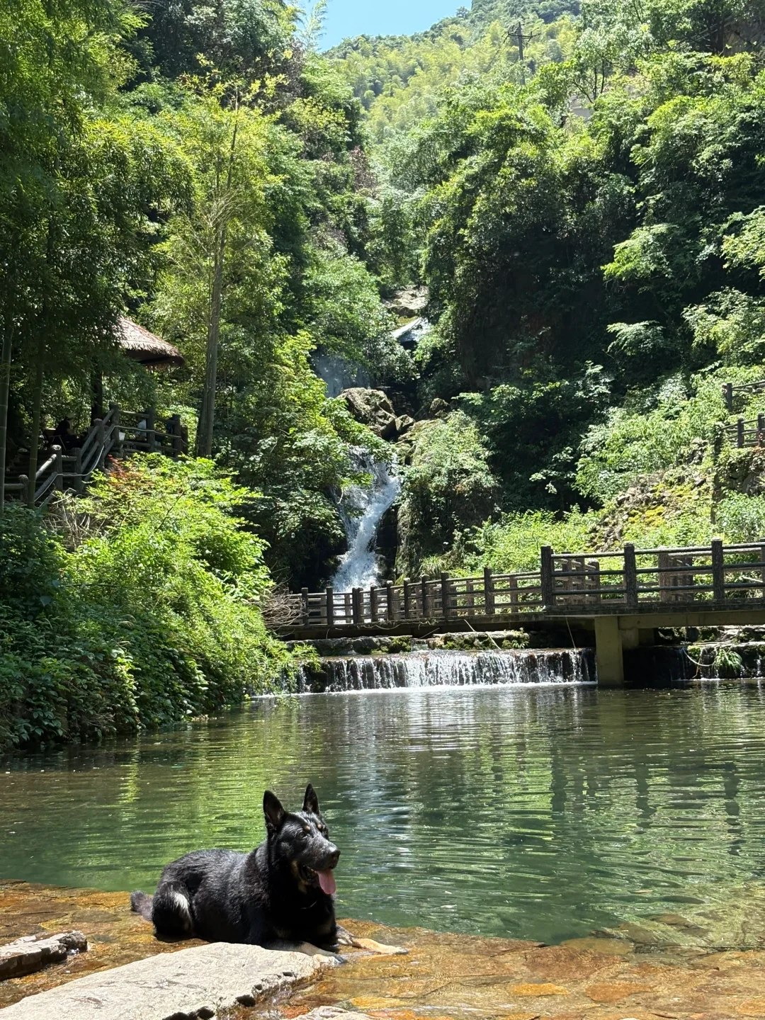 天气热起来了,杭州宝藏玩水地真的数不过来了 这个位置📍相对于其他网红地来说人不多 无需徒步🚶开车直达🚗而且水潭超级清💦 一靠近瀑布边就感觉到凉爽了🌬️ . 喜欢游泳的小狗可以在瀑布下面的深水区游 不太会游泳的狗狗可以在下游可以见到石头的地方游玩 . ✅有三个凉亭可以露营,免去扎天幕的麻烦 . ✅路边停车🅿️方便,如果觉得不安全,往彩虹谷方向走有超大停车位和公共厕所🚾 . ❌但是从公路到瀑布,有台阶,露营车不友好 . 📍位于鸬鸟镇,具体导航见最后一张图 . ⚠️注意保护环境,垃圾带走