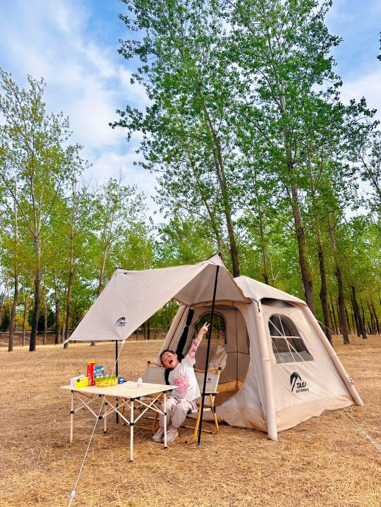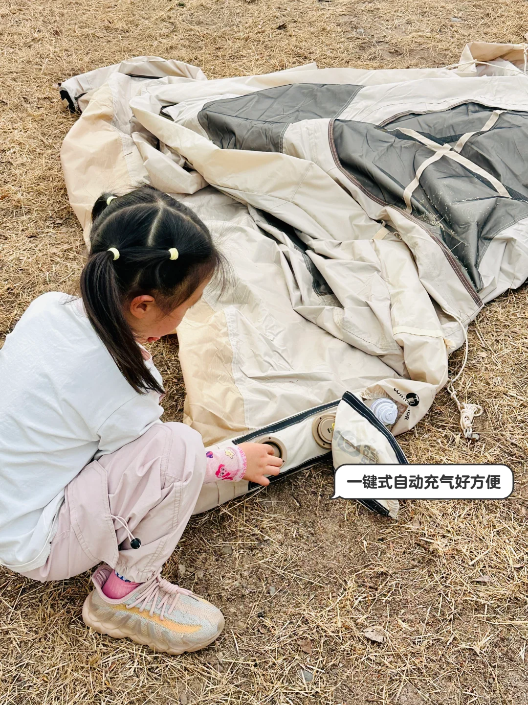 ✔️一键自动充气太适合我了,一分半左右就能搞定,真的好方便,孩子也能亲手搭,即使队友没来我也能轻松带娃开启露营模式