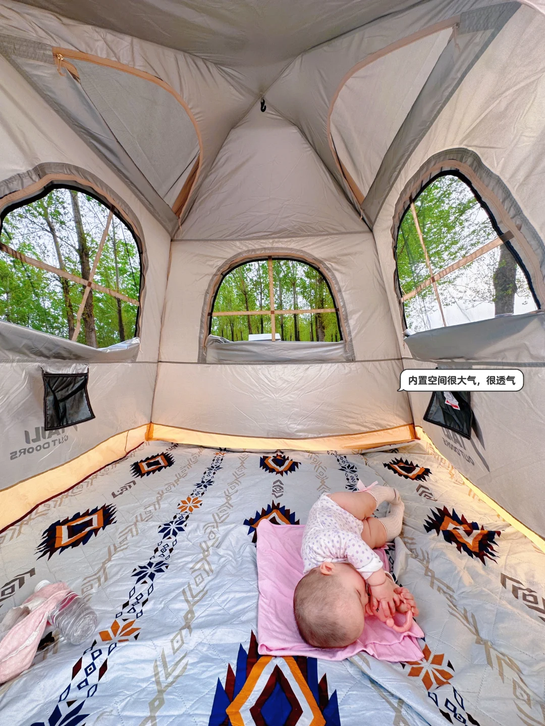 ✔️帐篷自带天幕,拓展空间很实用,一门三窗,内帘外纱的设计让空气很流通,夏天也防蚊,里外空间大,我们一家四口很够用