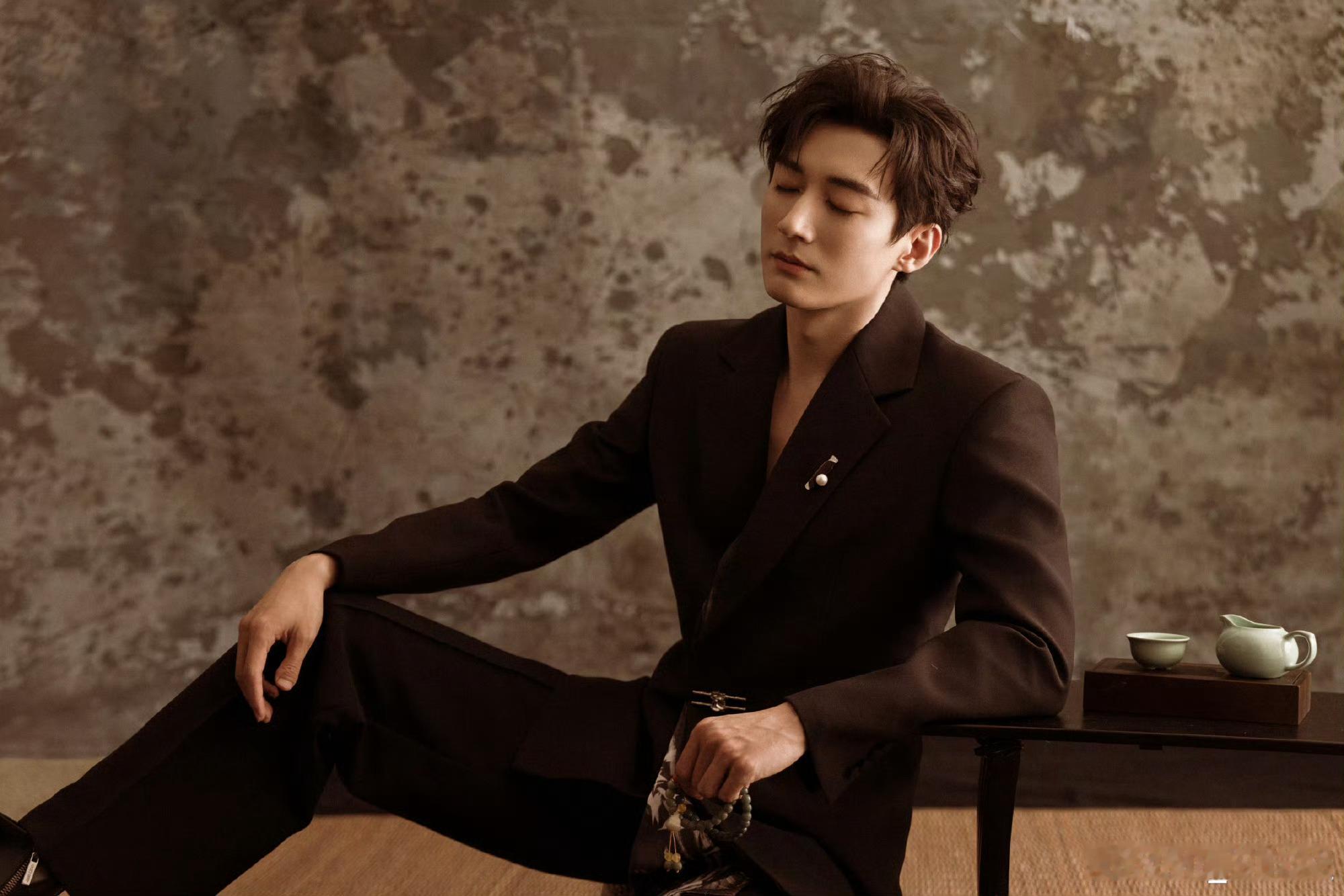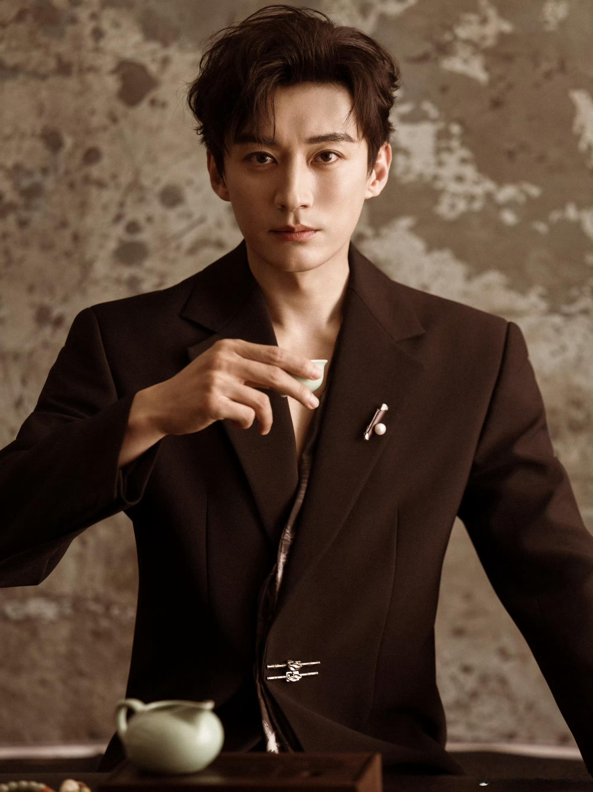啊啊啊啊这一身也太帅了吧!!深棕西装的利落剪裁衬出挺拔身形,别致的金属扣与胸针又添设计感,手持青瓷茶杯时,那份沉静矜贵的气质瞬间拉满,就像从古典画卷里走出的贵公子[苦涩][苦涩]