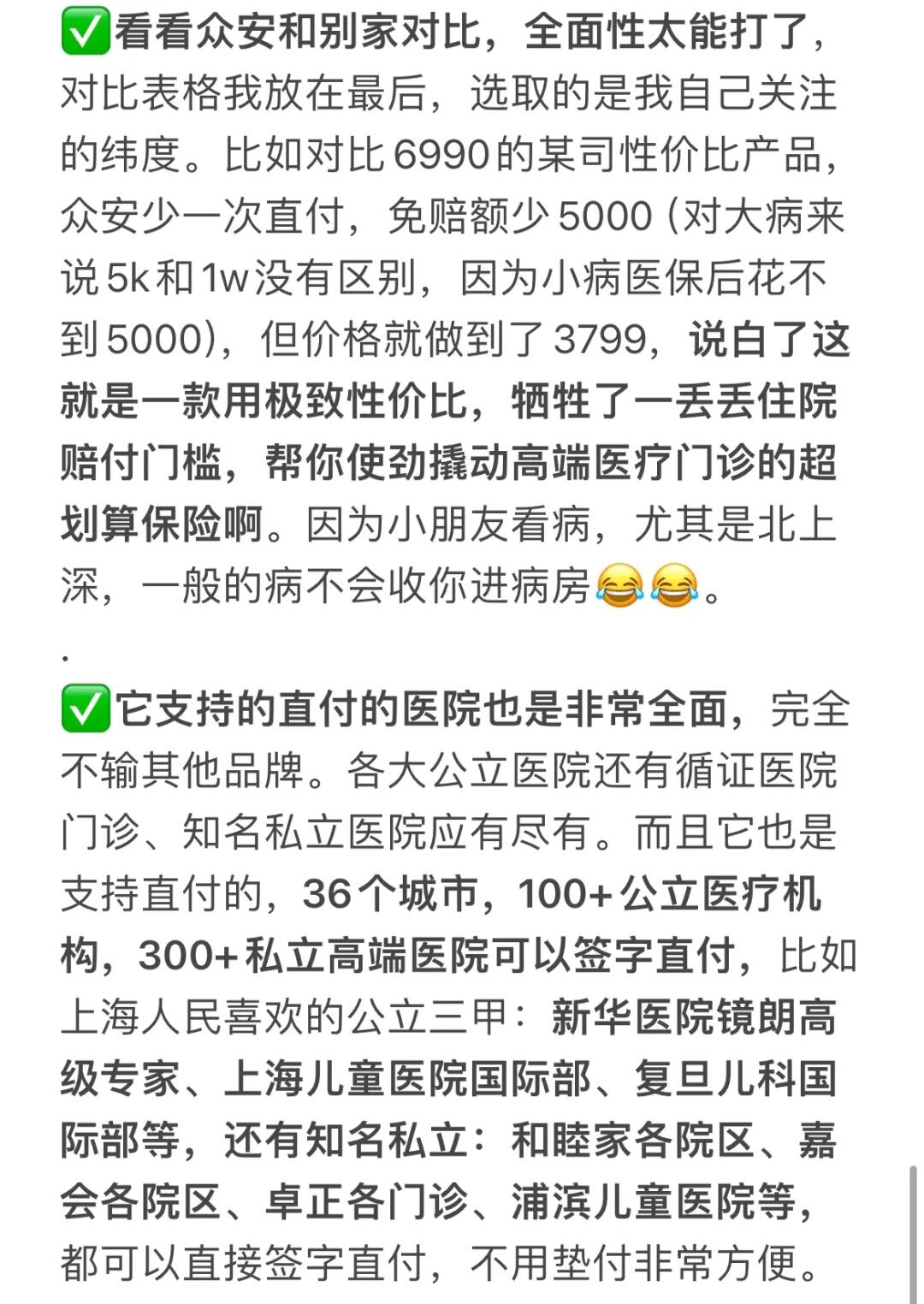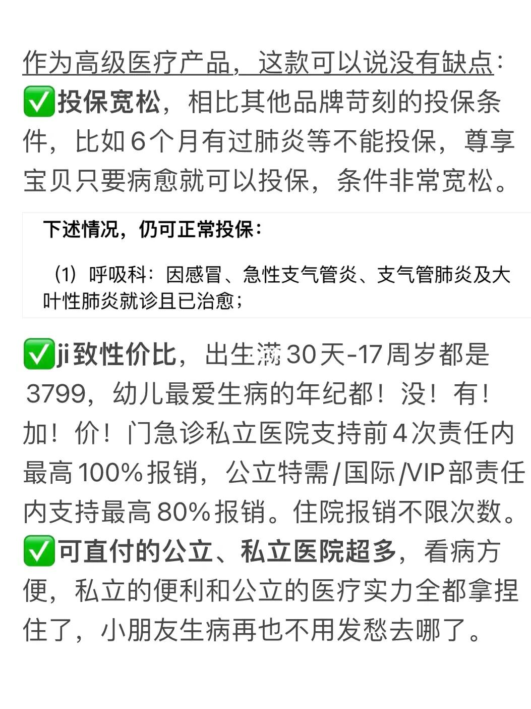 比起发烧我觉得更难的其实是替孩子做医疗决策,尤其是流行病期间想带孩子去看个病真的太难了,又担心人多又担心交叉感染。还好,每到这种时候我都有💕众安保险的尊享宝贝💕给我兜底,高端医疗品牌真的能帮助父母们拥有舒适的医疗环境,而且性价比极高,出生满30天-17岁智享计划才3799元,说实话现在哪个带娃去医院不花了千儿八百的出来,对于我们这种上幼儿园的孩子,尊享宝贝的保费<带娃看病的医疗费,性价比chao高。这样的高端医疗险产品,真的值得入手。尤其是它家直付医院还超级多,投保条件也很宽松,完全可以放心购入。
