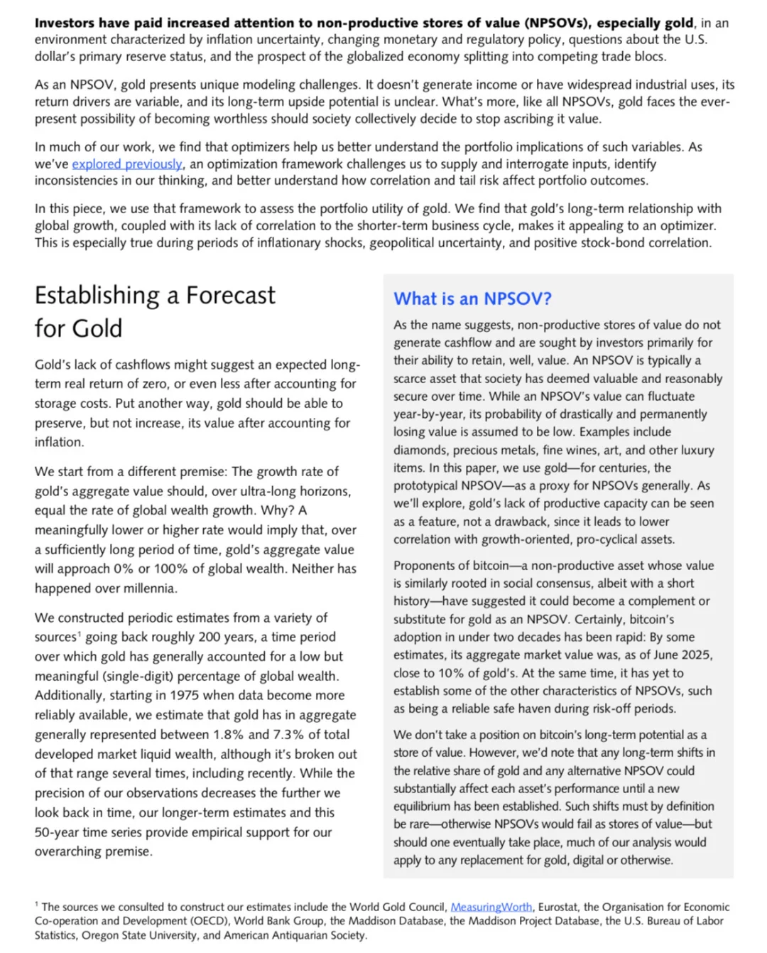 5. 比特币虽市值达黄金10%(2025年6月),且同属“靠共识估值”的资产,但缺乏危机时的避险表现,暂未达到黄金作为成熟NPSOV的标准。