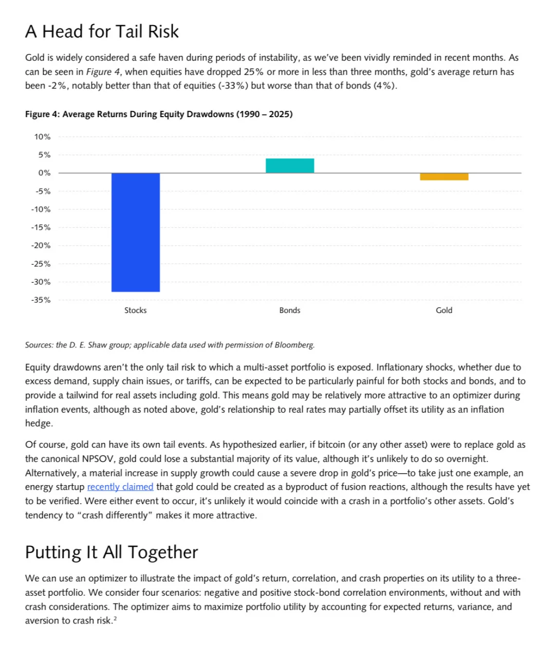 11. 黄金自身有贬值风险(如被比特币替代、 fusion技术量产黄金),但这类风险和股债崩盘不同时发生,不会让组合风险“雪上加霜”。