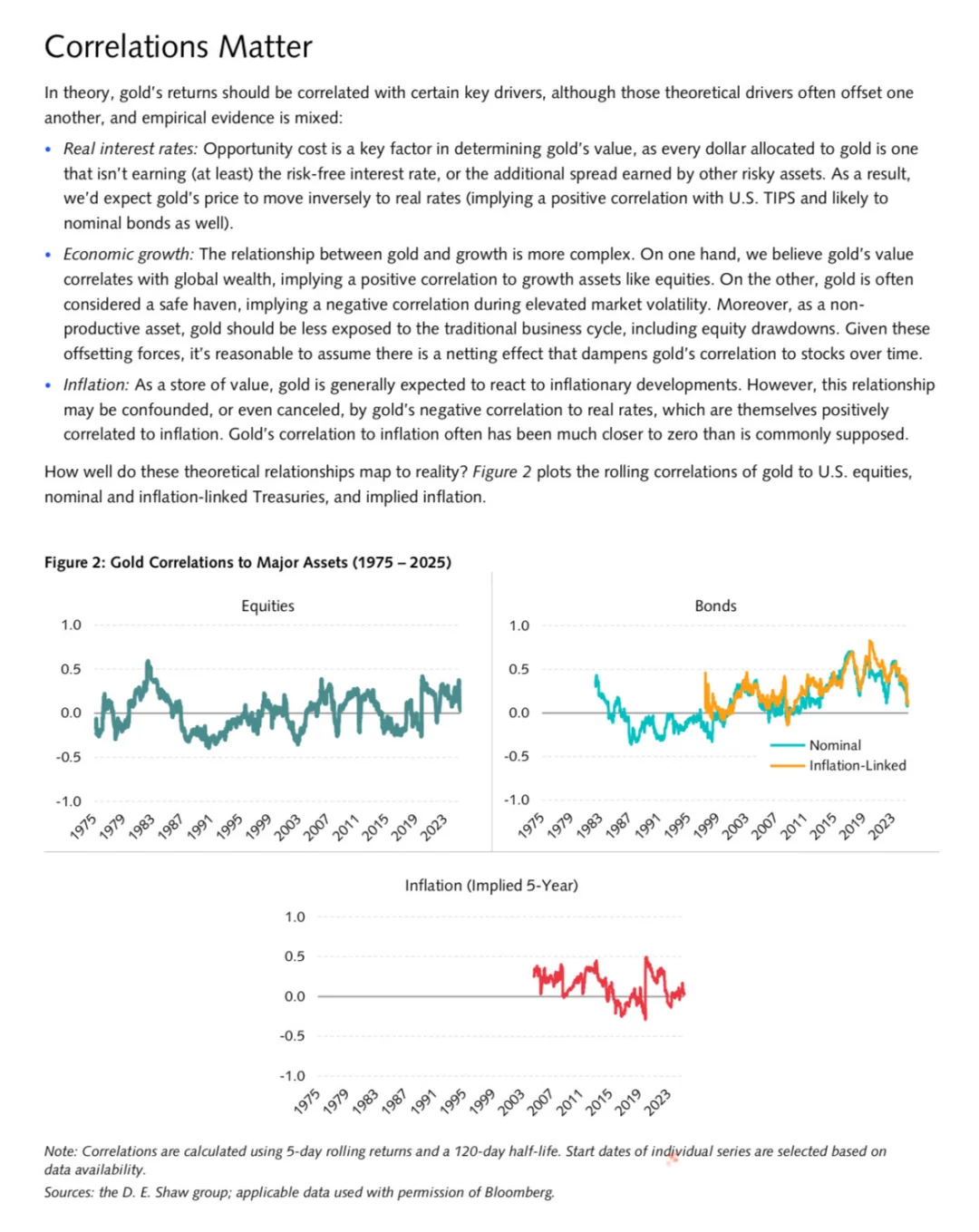 7. 黄金抗通胀能力不如市场认知中强,与通胀平均相关性仅0.13,因它和“随通胀上升的实际利率”呈负相关,会抵消部分抗通胀效果。