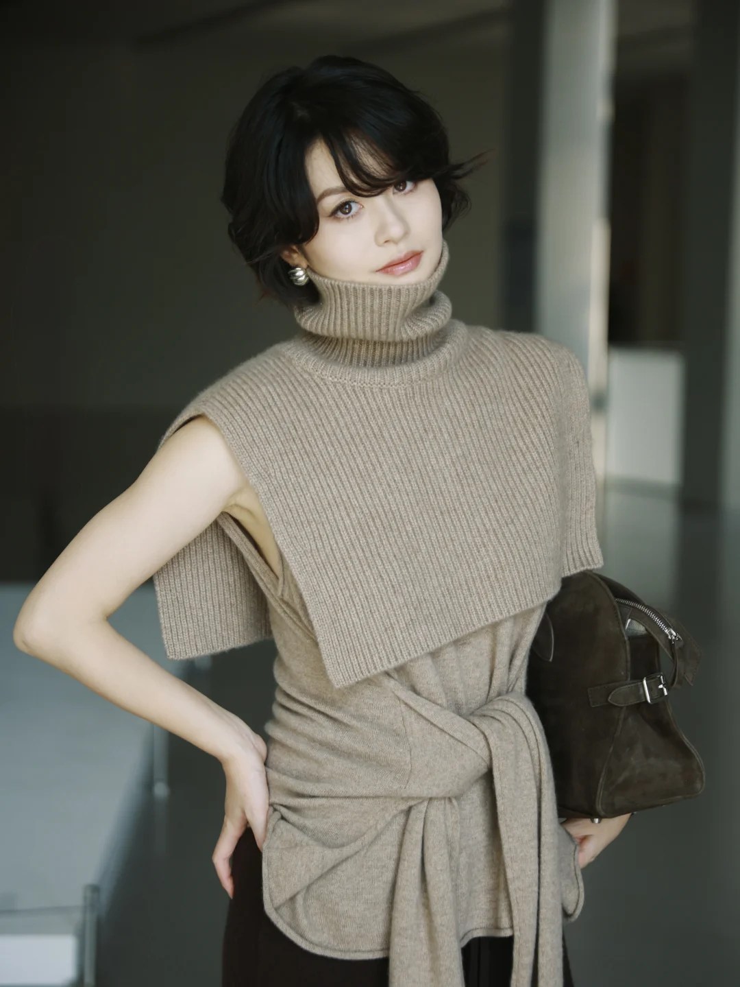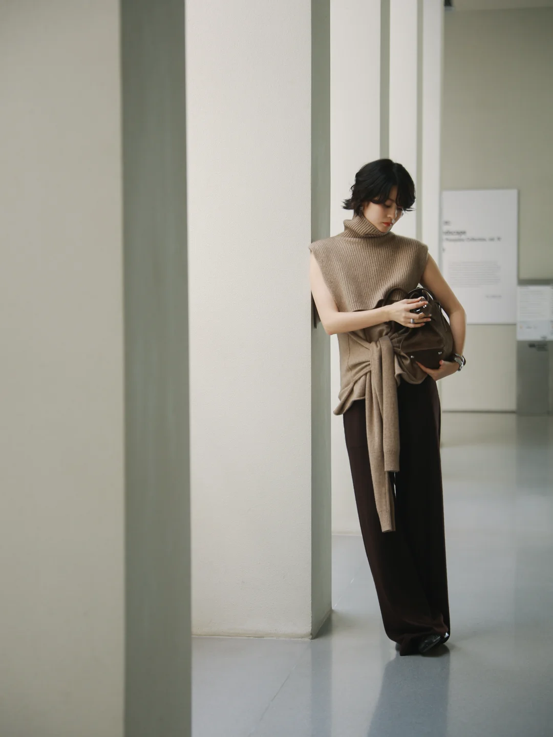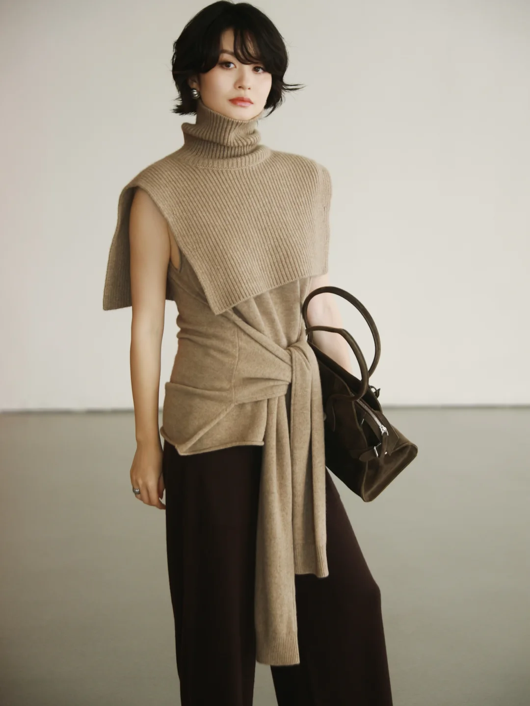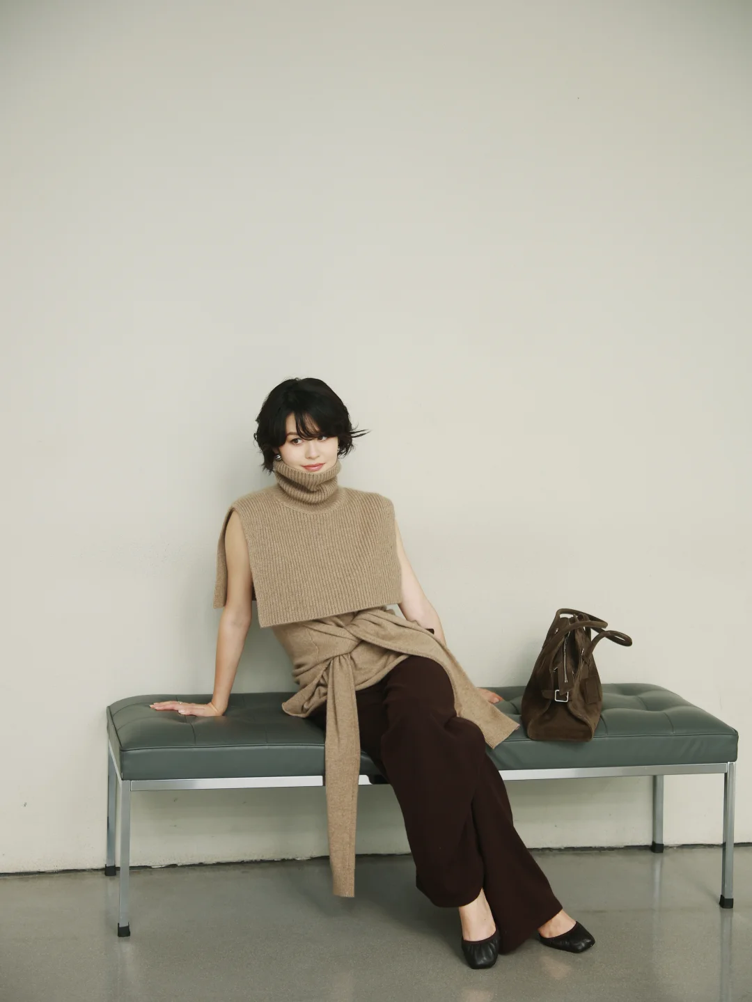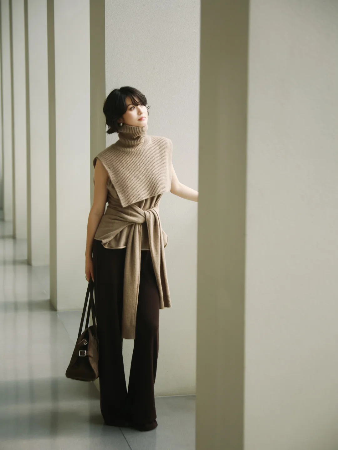 不对称的层叠结构,上身丝毫不显刻意,反而让身体与衣物之间有了自在游走的余地。正是这些“灵光一现的不完美”,成了专属于我的独特轨迹,也深深呼应了Uma Wang那句“容纳意外,拥抱偶然”的美学内核。面料依旧是1436引以为傲的小山羊绒,但这次被注入了更洒脱的灵魂——它不再是单一的软糯,而是拥有了自己的风骨,柔软之余,筋骨分明