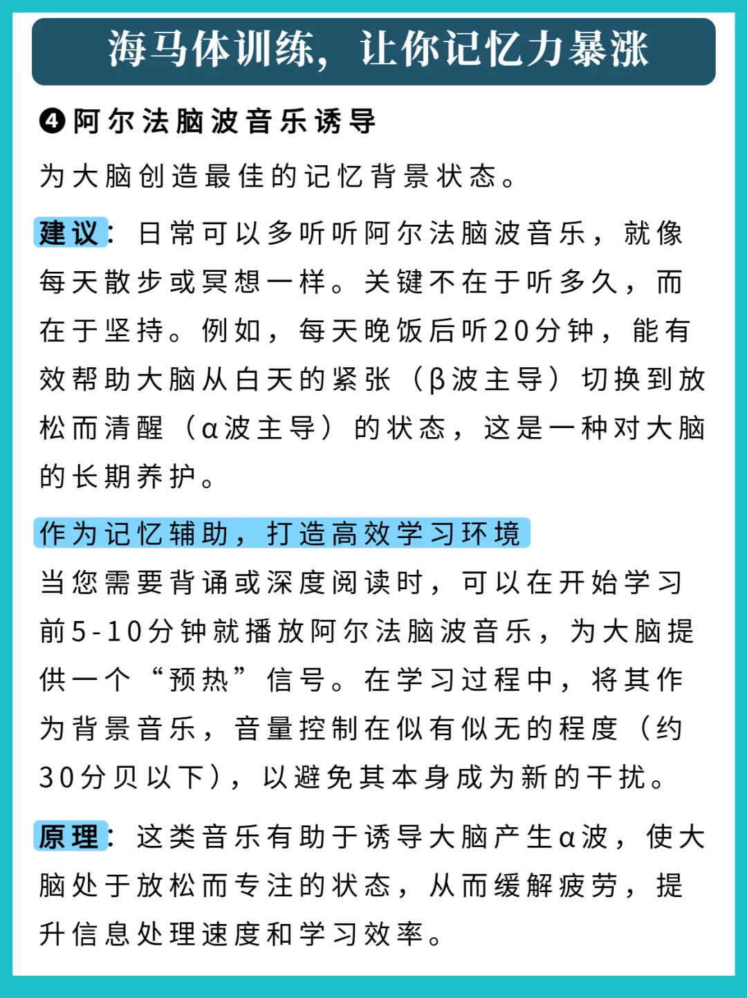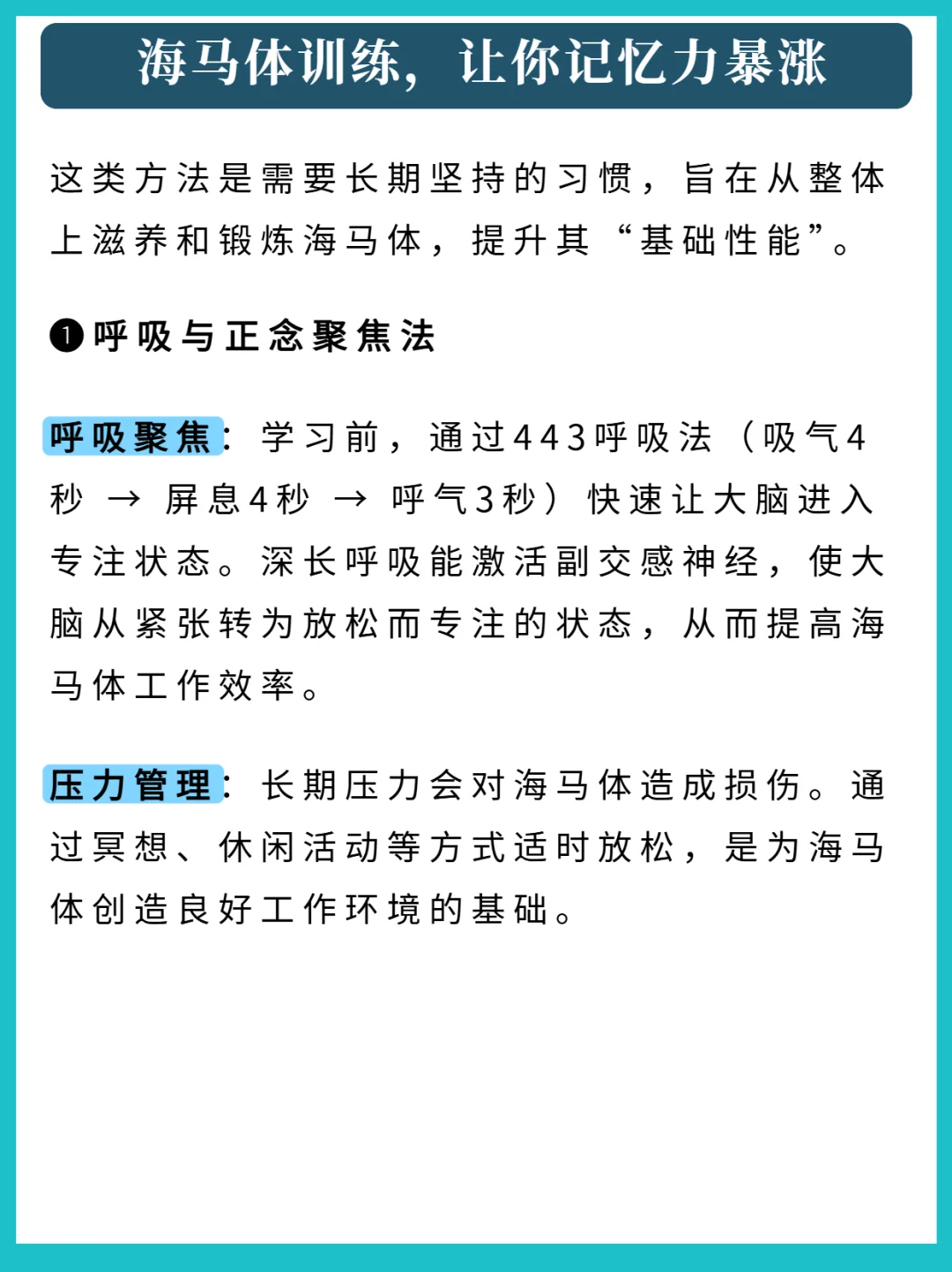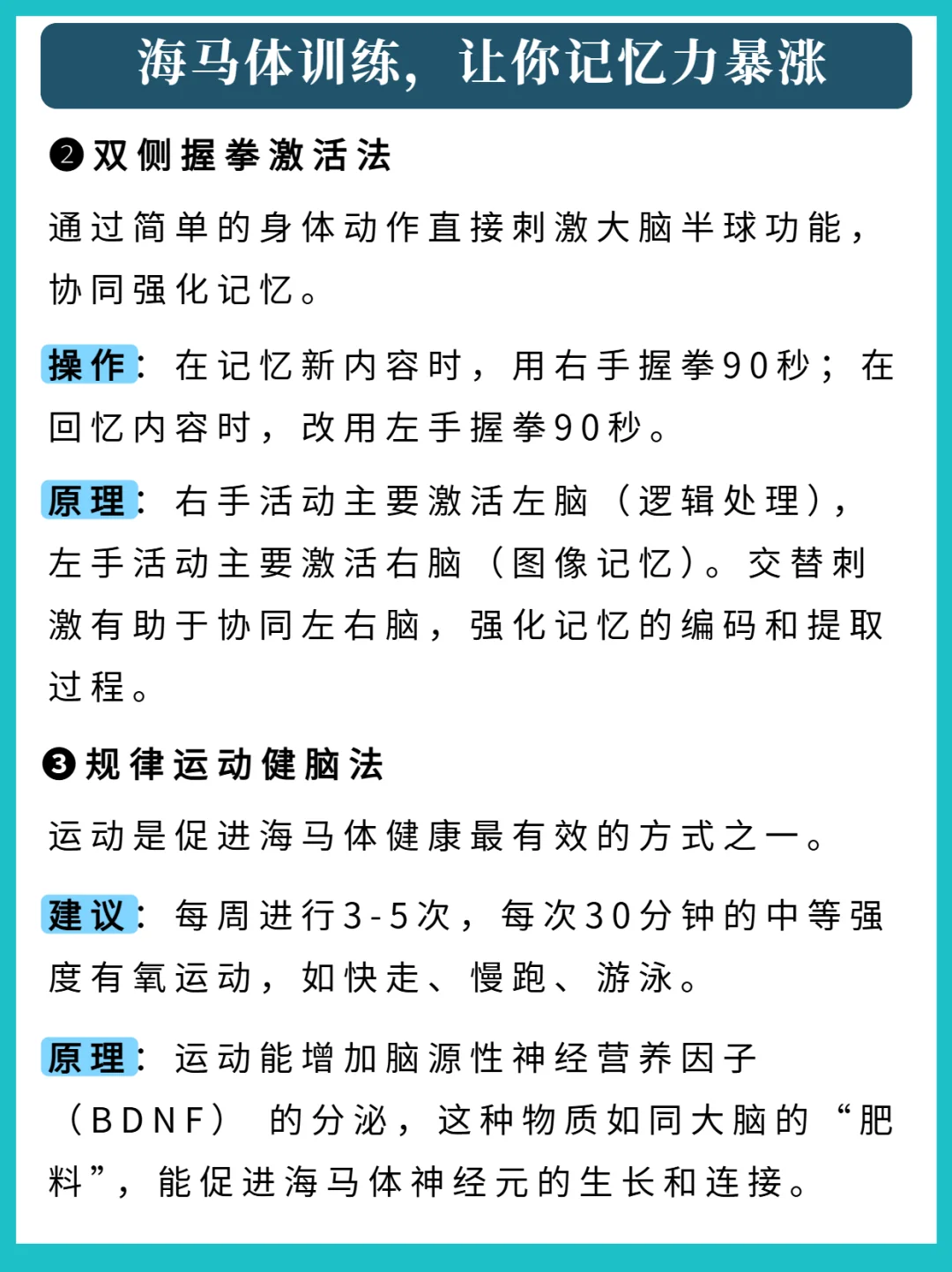 这类方法是需要长期坚持的习惯,旨在从整体上滋养和锻炼海马体,提升其“基础性能”。