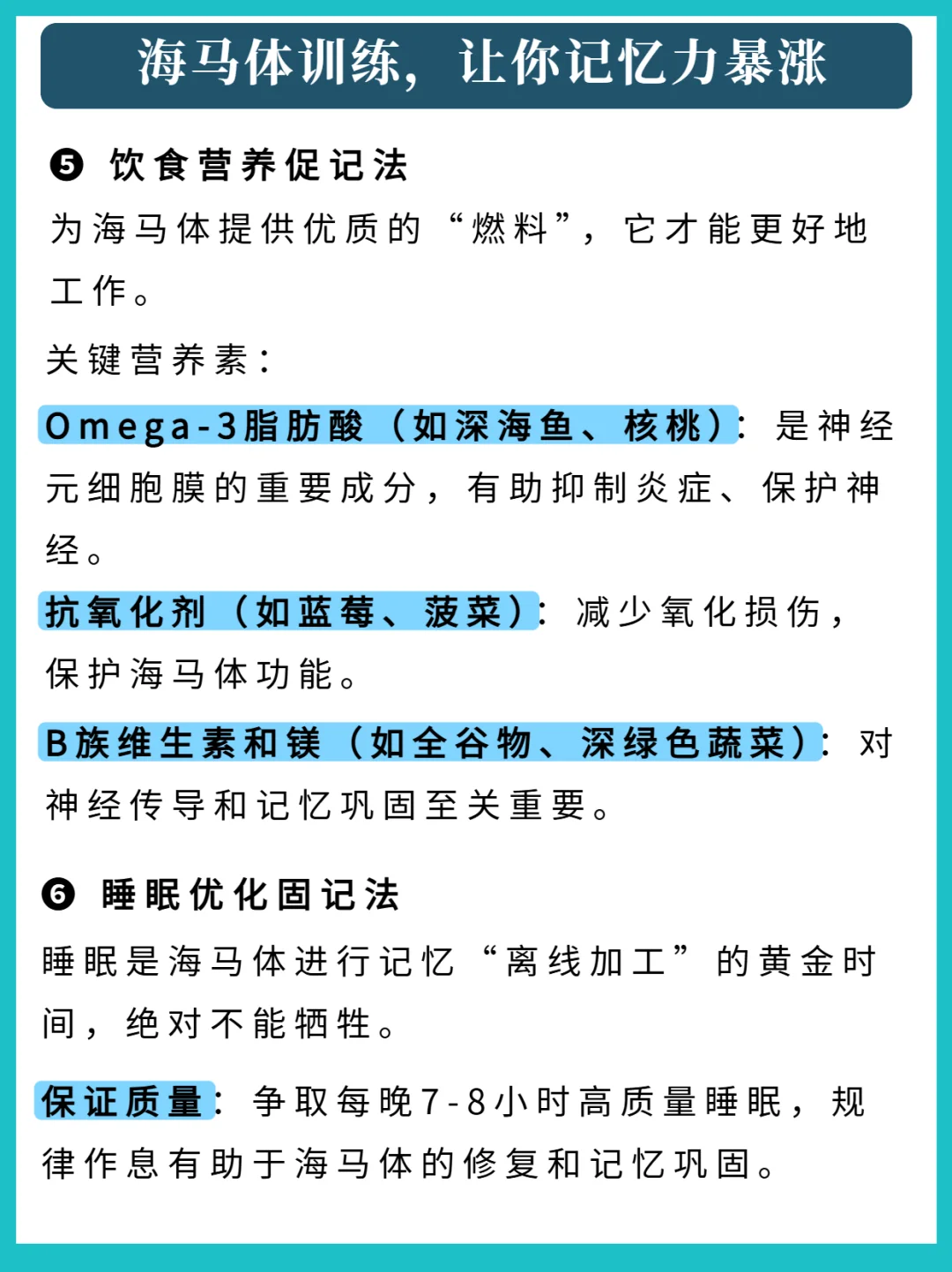 夯实基础:通过运动、饮食和睡眠等长期习惯,从根本上滋养海马体。