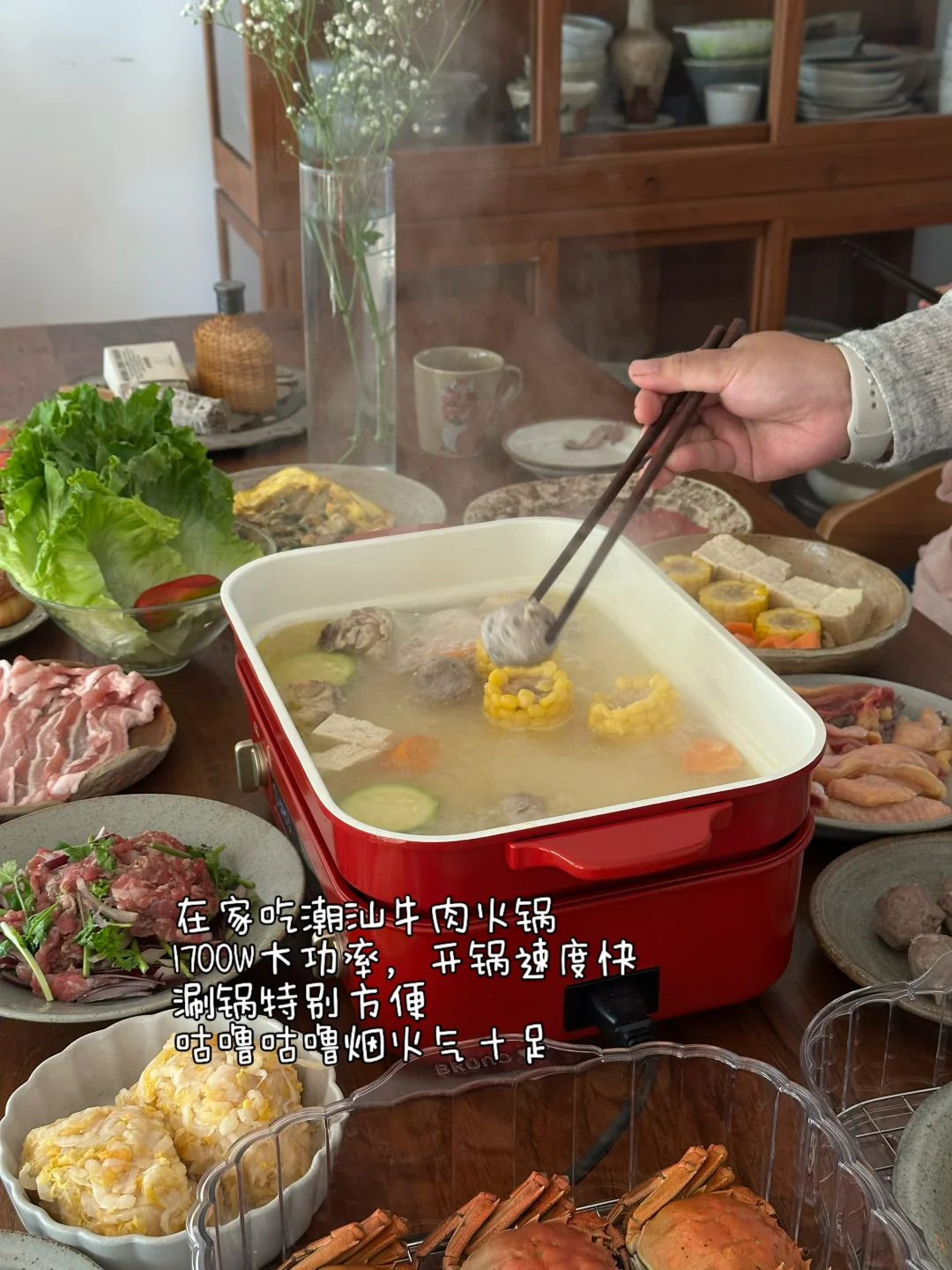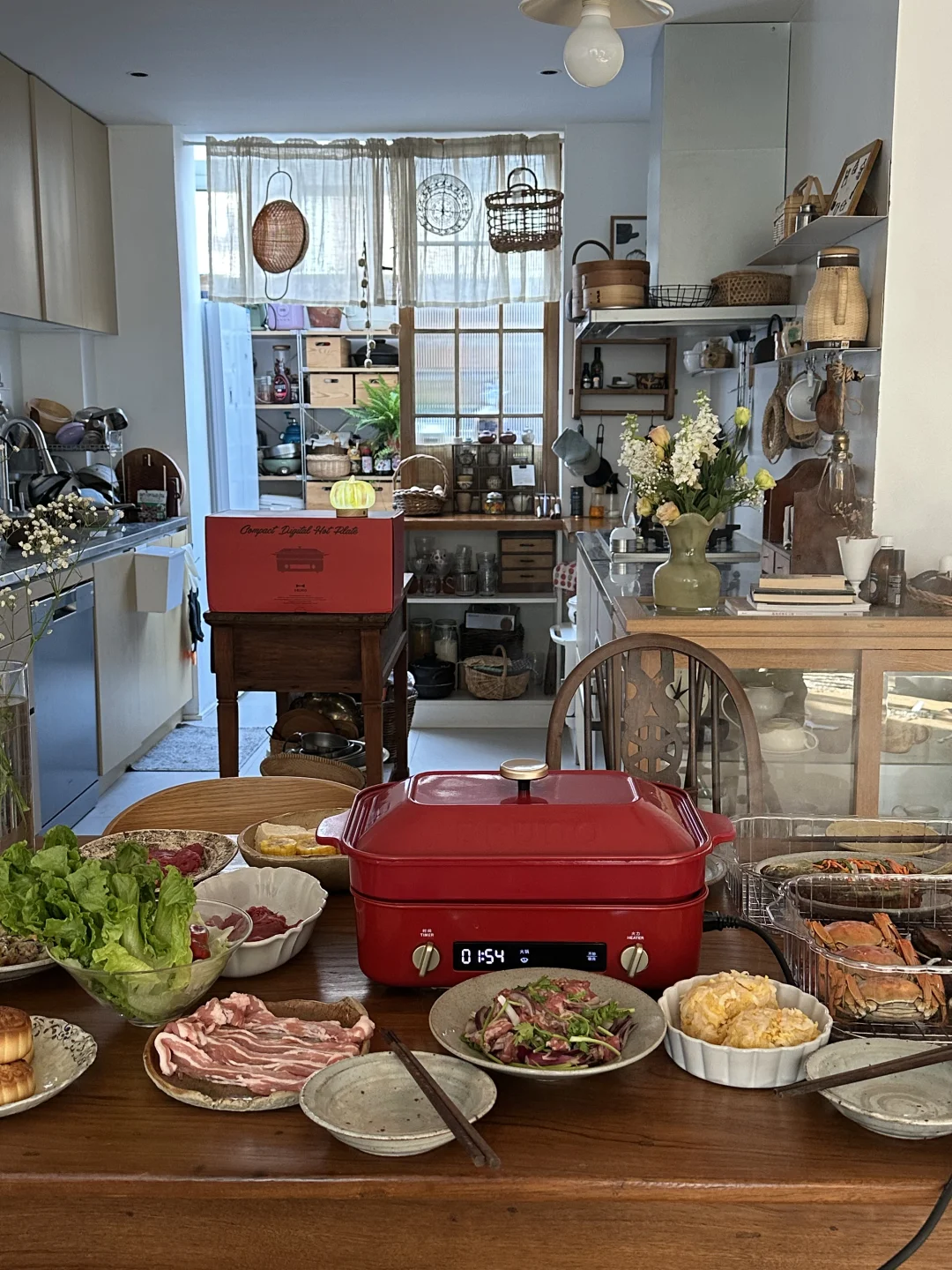 复古红是真的很好看,跟我家原木风契合度百分百。5L的大容量深锅,开锅速度很快,只有大功率才能吃出脆嫩的食材口感,人多的聚会也完全供得上。