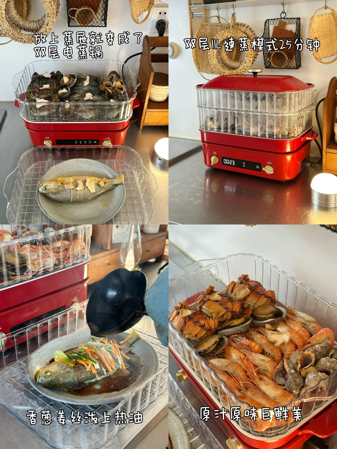我真的超爱它这个速蒸模式,拿来做蒸汽海鲜真的巨方便,双层11L容量也够大,蒸出来的海鲜原汁原味,超鲜美巨好吃!!透明蒸屉观察食物状态也很方便!