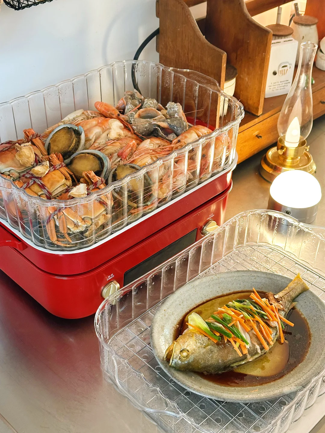 亲友欢聚需要硬菜撑场,高颜值的锅具更为聚餐加分。今日的一桌美食用BRUNO多功能锅,颜值真的好好看啊!不开火准备了一大桌真省事,涮火锅吃烤肉,蒸一些正当季的海鲜和蒸鱼,做了蚝仔煎当小吃,主打的就是一个鲜。