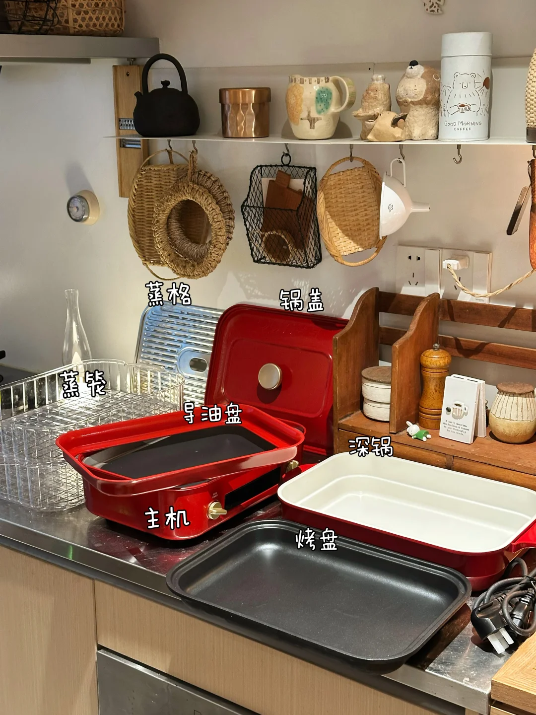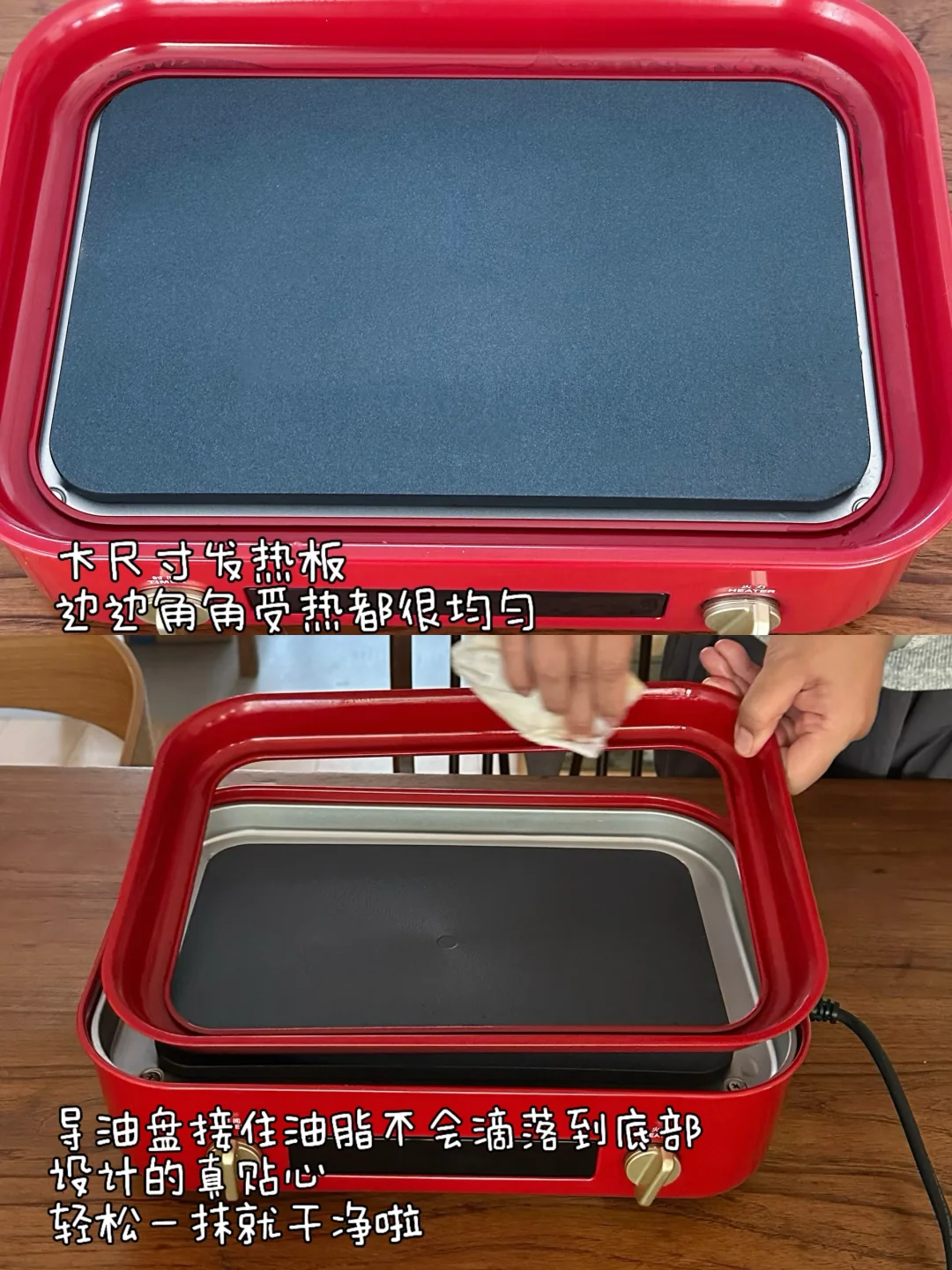 所有配件都是分体设计用完清洗就很方便!环绕式导油盘,可以接住滴落出来的油脂汤汁,很好的保护底盘,用完不用再很费力的清洁底盘啦。吃完饭收一收,和朋友们喝茶聊天啦