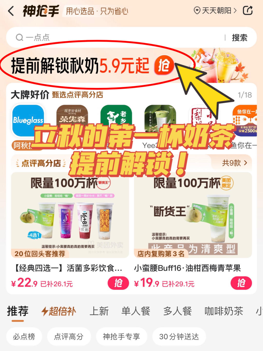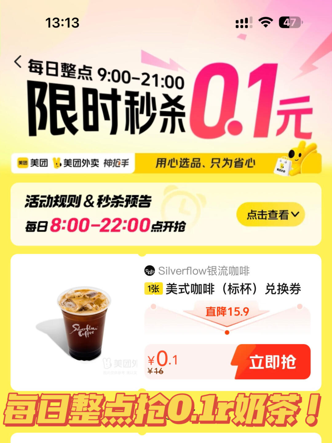 现在每天到工位第一件事就是打开美团搜“神抢手”选奶茶,更有整点限时秒杀抢0.1r奶茶,和同事拼手速的时候到了!