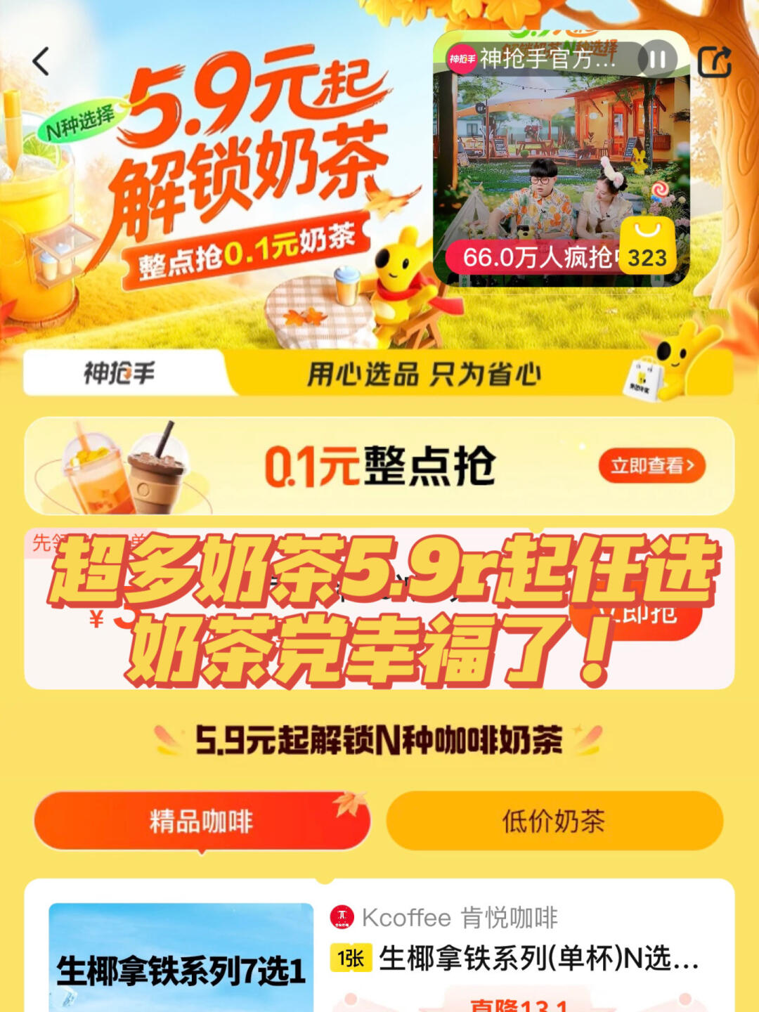 就算没抢到,5.9r起的价格也比线下便宜太多!早八人表示:这波奶茶钱省得值!!👍