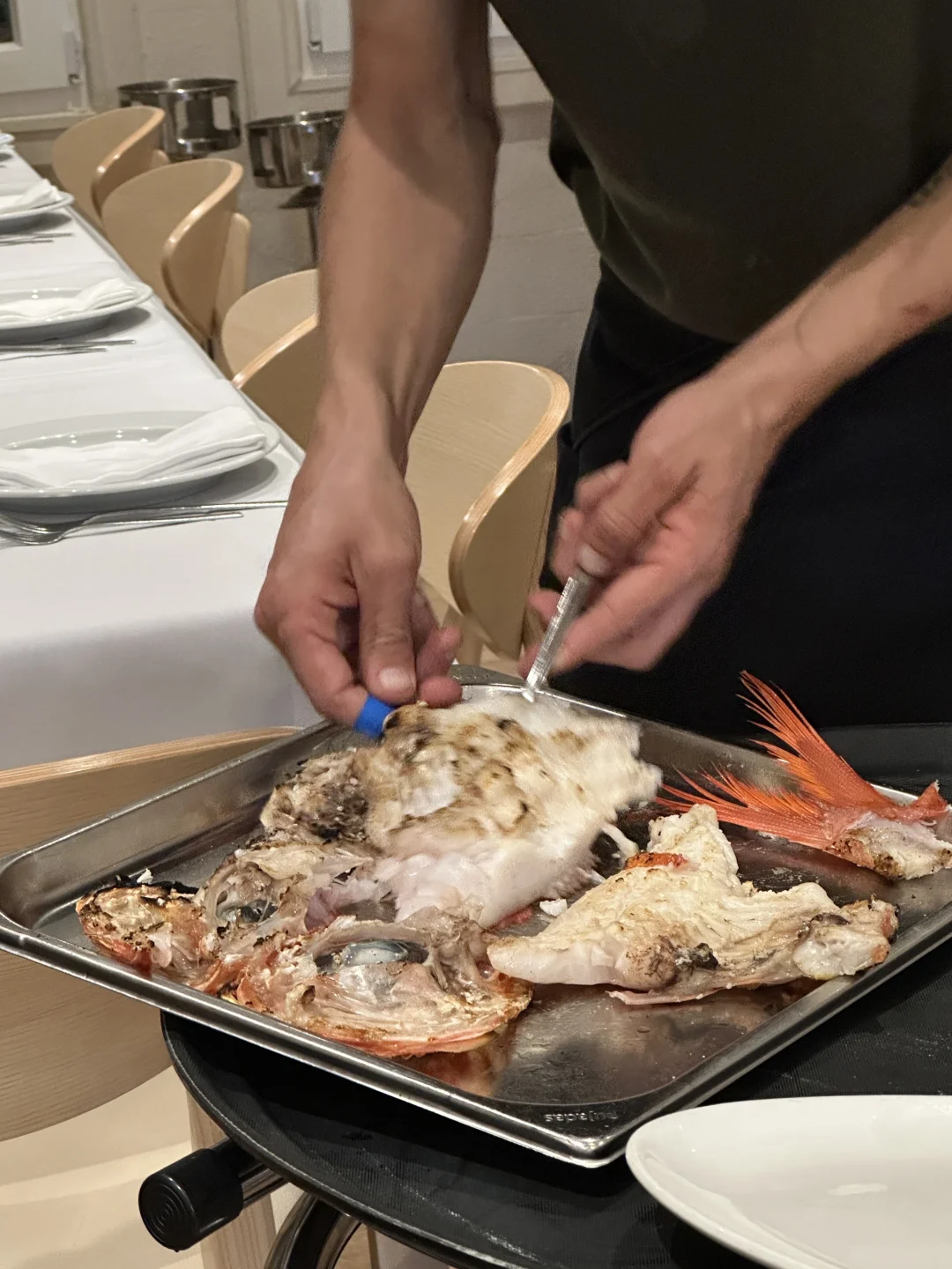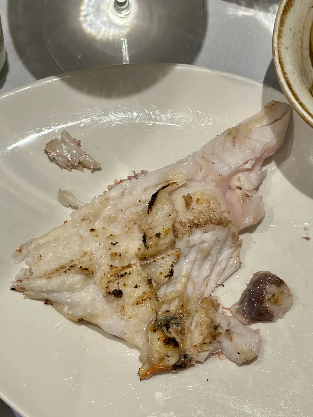 说实话,我感觉有丢丢老了。我吃到最惊艳的,还是在马略卡的Port de Sóller小镇上Ses Oliveres的大眼鱼(之前写过)鱼肉一瓣瓣,鲜美无比。