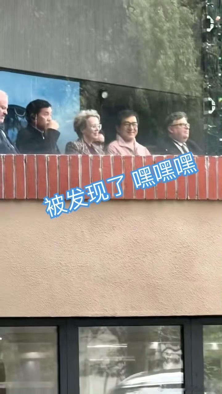 张天爱跟素人合影,胯真的好宽,大宅院似的