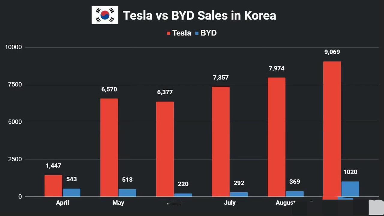 比亚迪在韩国卖成这样?? 还要继续吗! 咱们先看数据,根据韩国进口汽车协会(KAIDA)的统计,比亚迪从2025年3月正式进入韩国市场后,3月才10辆,4月直接冲到543辆,到了9月,单月才破千 感觉,韩国汽车市场路上感觉一半是现代,一半是起亚,再一点是三星,再一丢丢是bba。其他的很难见到了,我觉得是政策上倾向韩国产吧,要是真打开市场宣传,这些现代起亚销量肯定受冲击。
