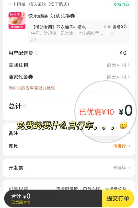 拿着通兑券免费喝~