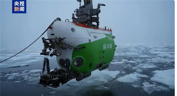 在海冰覆盖率大于80%的中央海盆,科考队进行了国际上首次加克洋中脊的载人深潜科考,最大下潜深度5277米。