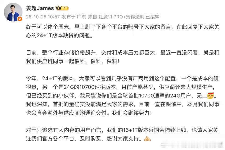 红魔 11Pro + 氘锋透明银翼 16GB+1TB 版开启预约!