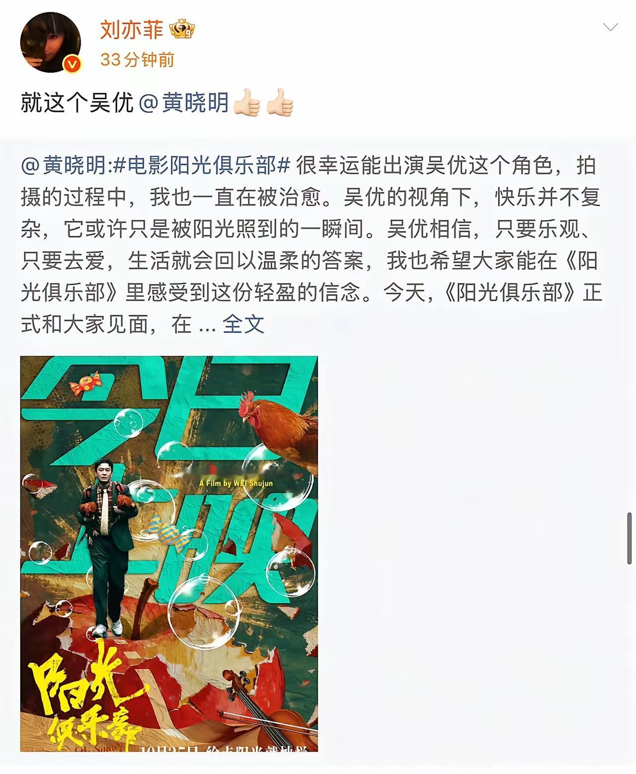 你能吐槽黄晓明演技忽上忽下,也能调侃他选剧本眼光偶尔掉线,但没人能瞎掰他的人品不行! 就说他新电影《阳光俱乐部》刚上,票房不算亮眼的时候,刘亦菲二话不说就上线转发宣传。要知道俩人二十多年前合作《神雕侠侣》,过儿和姑姑的CP至今还在观众心里有位置,这都过去这么久了,不是塑料情那种需要时才联系的关系。 娱乐圈最假的是“红毯闺蜜”“片场兄弟”,最真的就是这种过了二十年,对方作品需要支持时还愿主动伸手的情分。能让老朋友这么给力,本身就说明黄晓明待人没话说——人品这东西,从来不是靠说的,是靠这么多年的相处攒出来的。 你们见过娱乐圈里最让人觉得“原来真有长情友情”的是哪对?来聊聊呗!