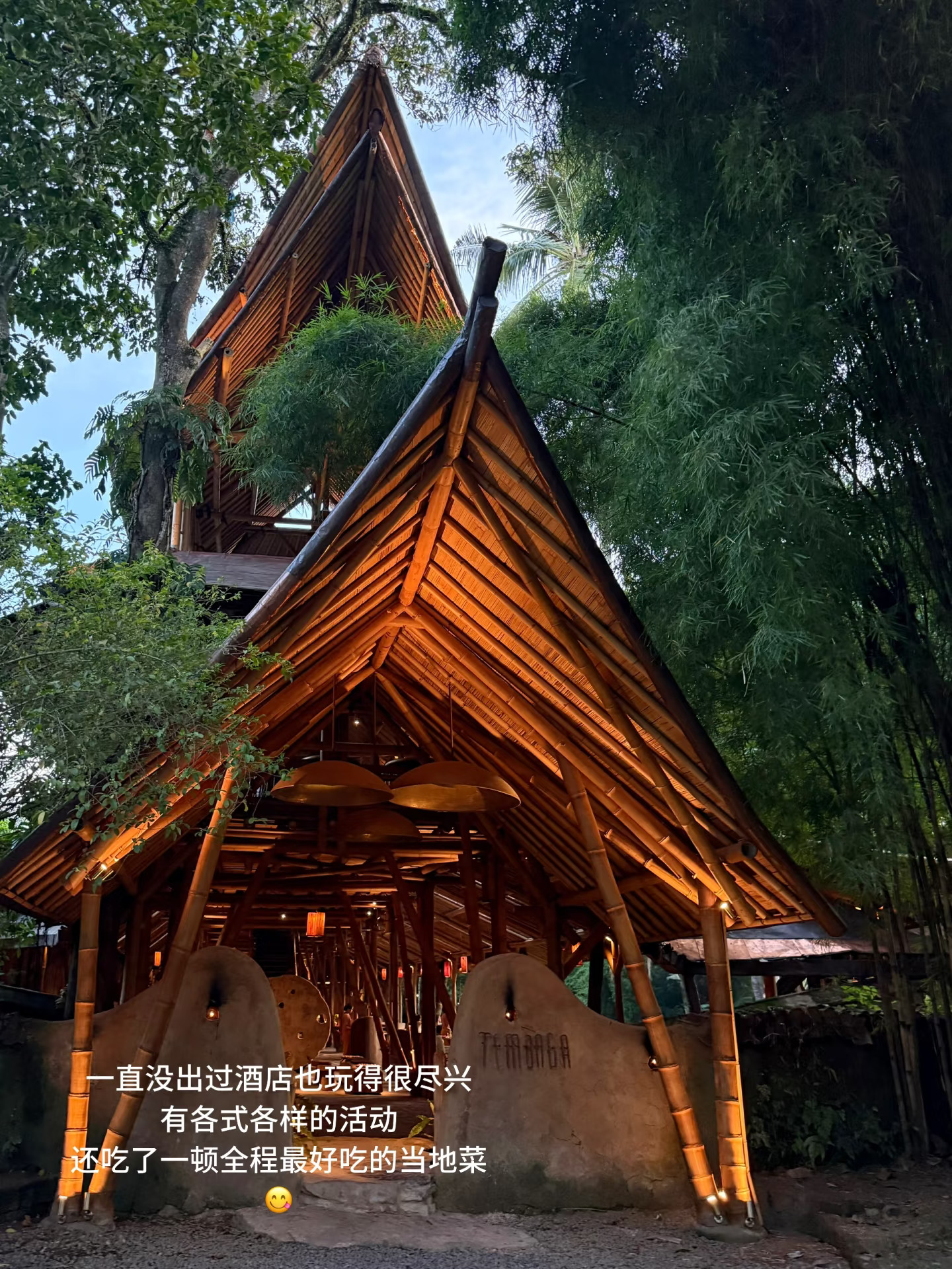 我的「下次还住」酒店list✔️一定有Bambu indah 穿过村庄小路开进酒店时还以为grab错了定位,司机却说我们做了个好选择,这个酒店别看表面如此,后面有一大片丛林呢。 就这样,之后的时间我们一直被无边的绿意环绕🎋 清晨的虫鸣蛙叫,黄昏的嬉戏碰杯 浮于虚空的萤火🎆银河坠入眼眸的浪漫🌌 和粉紫色天空融成乐章🎵 再枕潺潺溪流,徐徐入梦 很喜欢这里的理念,实实在在把环保融入细节里,重新塑造一种生活方式,最自然原始,也最轻松舒适。