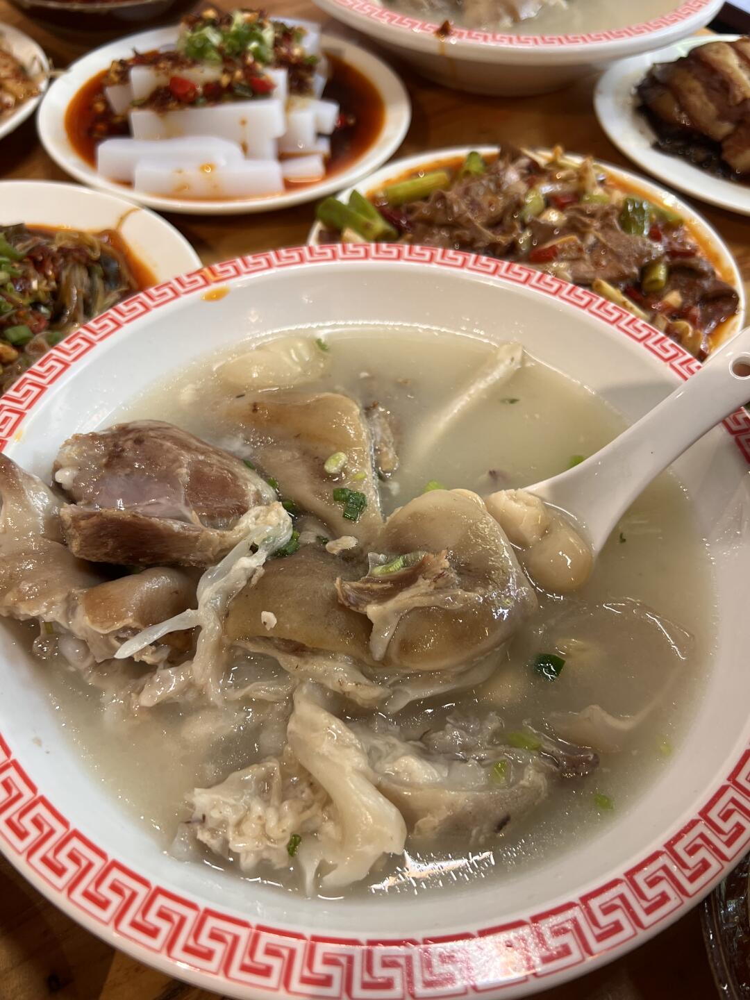 📍廖壳子烂蹄花(较场口店):居民楼底下的小店,很普通但是味道超级好,很大一个猪蹄性价比很高