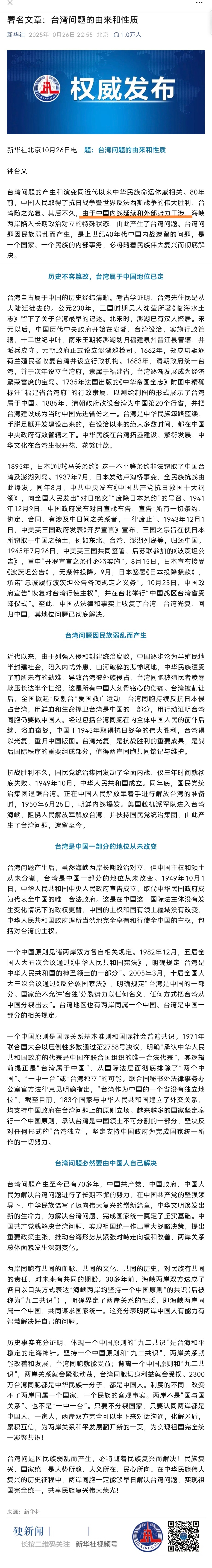 这是国家民族统一的政治和法律大是大非问题,它赋予了解放台湾的充分历史合法性,以及中国人民反对帝国主义、反对新老殖民主义的伟大任务。