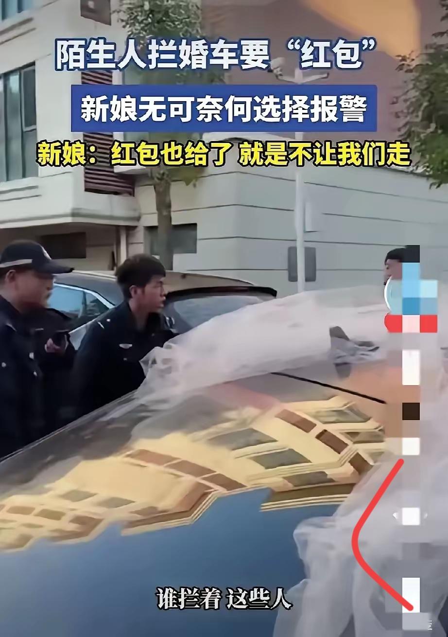 就是这个粉衣女子,组织人拦婚车,给了三条烟和红包还嫌不够,扬言报警也没用。这是典型得拿风俗当幌子,干拦路抢劫的勾当。建议抓起来判刑,杀一儆百,好好杀一杀这股歪风邪气。否则他们就会把拦婚车当成生意。 马路上拦婚车 婚礼拦车要红包 拦婚车陋习 婚车挡路 堵门婚车 光天化日拦婚车 农村拦婚车