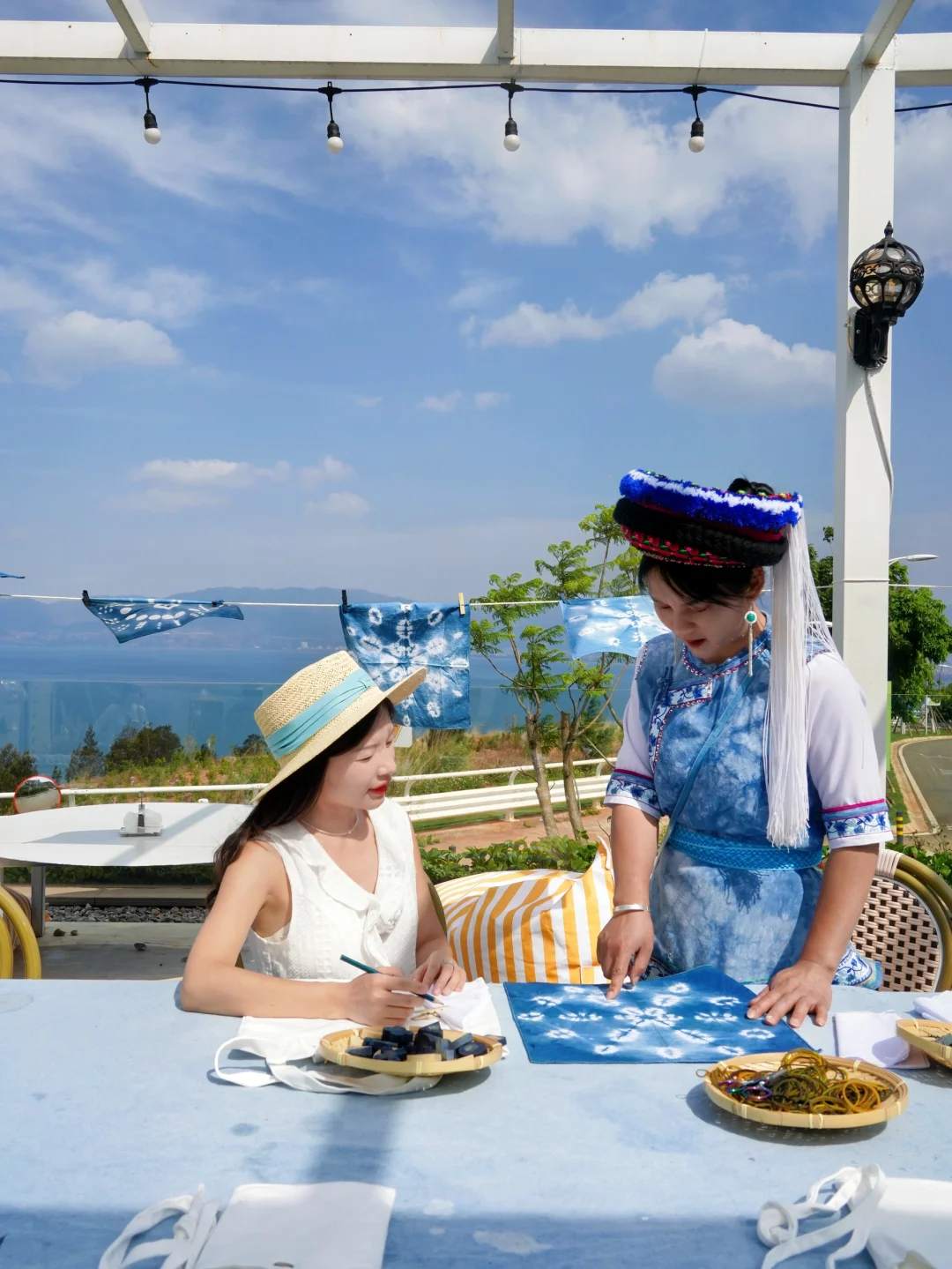 ✅ 非遗扎染课:亲手染一条湖蓝色方巾,把抚仙湖的波纹戴在身上