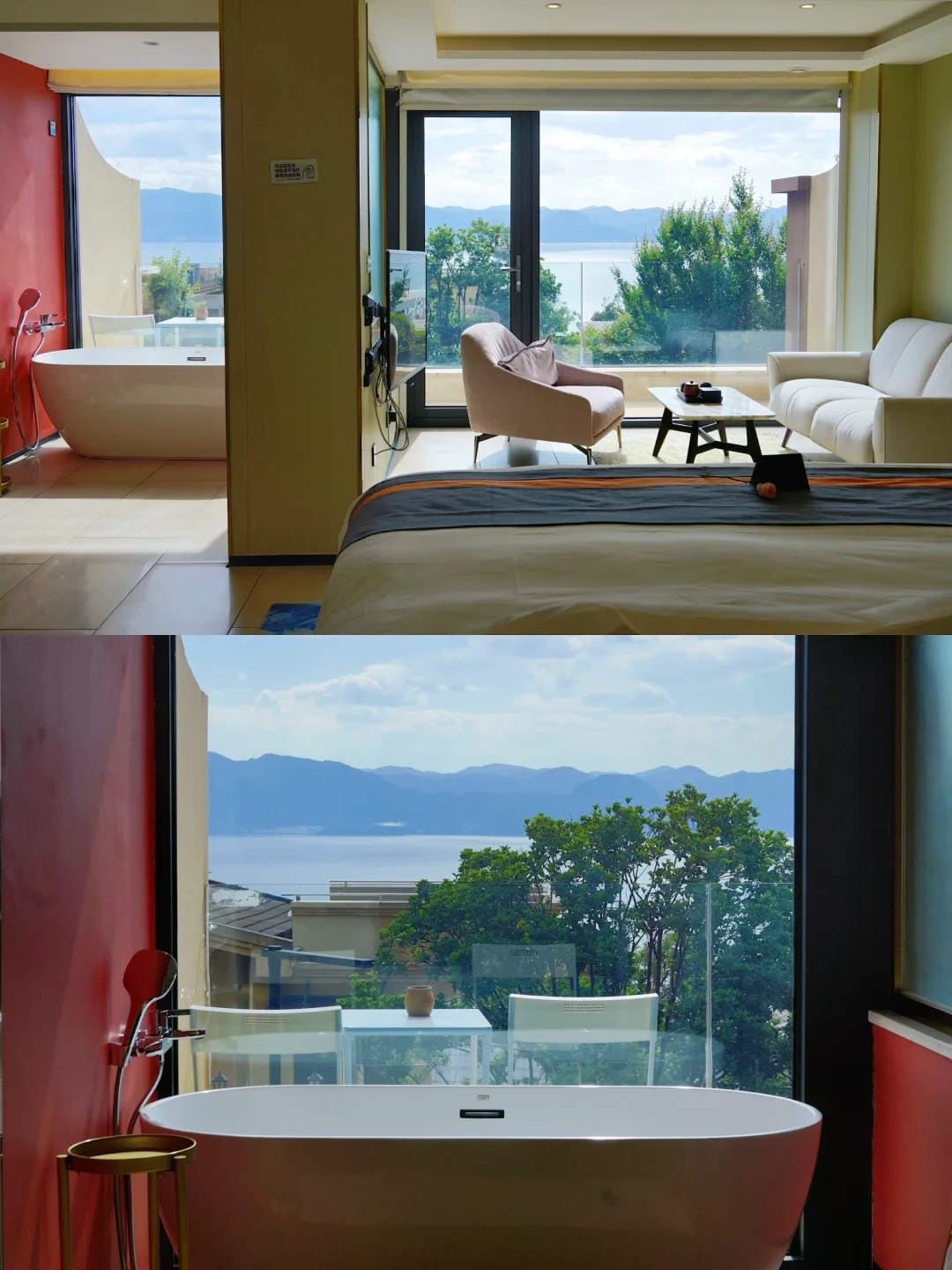 • 湖景房像是睡进油画里,每天起床睁眼就是抚仙湖的治愈蓝💙