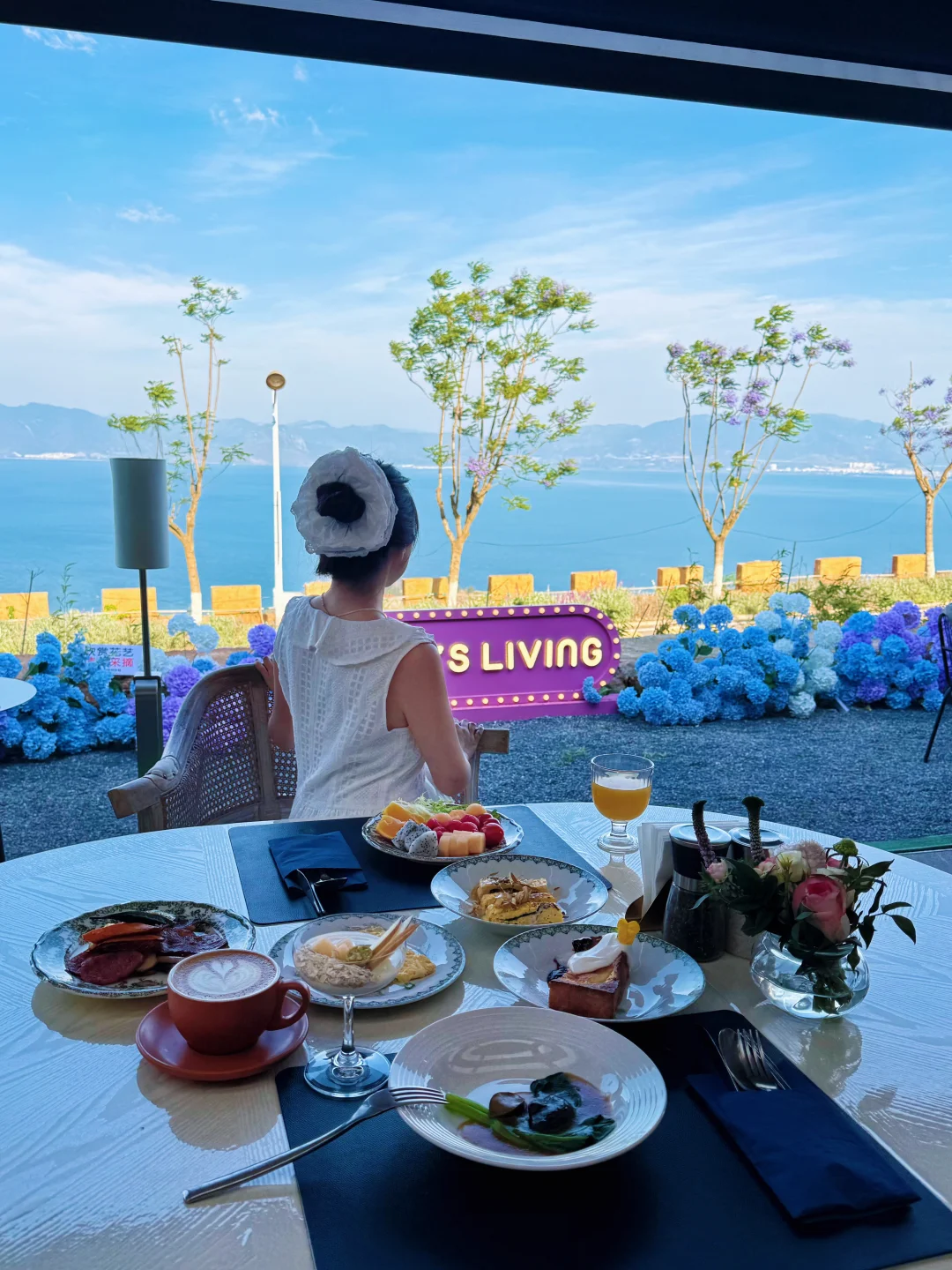 在束西西餐厅对着抚仙湖吃早餐太幸福了!