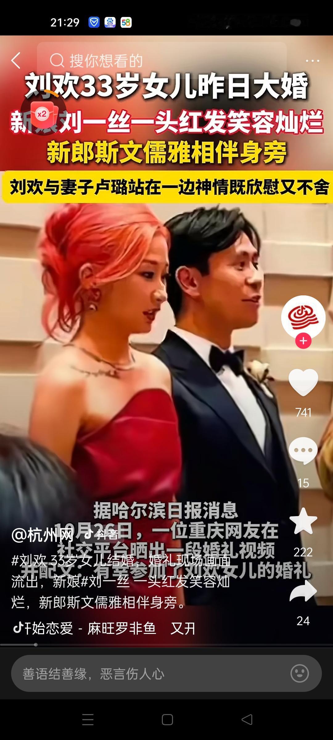 刘欢33岁女儿结婚,刘欢与妻子卢璐一脸欣慰和不舍。新郎儒雅,得体。刘欢33岁女儿结婚,刘欢与妻子卢璐一脸欣慰和不舍。新郎儒雅,笑容温润,仿佛一股春风拂面,让人忍不住心生暖意。这一幕,既是一个家庭的幸福时刻,也是无数父母心中那份难以言喻的情感交织。 你是否曾想过,父母对孩子的爱,究竟有多深?从孩提时代的摇篮曲,到青春期的叛逆,再到今天女儿走入婚姻的殿堂,这一路走来,父母的心像是一场穿越风雨的旅程。刘欢和卢璐的眼中,满是欣慰,也夹杂着一丝不舍。这份不舍,不仅仅是对女儿成长的感慨,更是对未来生活的祝福与期待。 在这个瞬间,或许有人会觉得:父母的心,真是复杂得令人心疼。明明知道女儿会有新的生活,但心底那份牵挂,却难以割舍。有人说,父母的爱像一条河,宽广而深沉,无论女儿走到哪里,始终在心底守候。每一次看着女儿穿上婚纱的模样,都是他们心中那份无声的承诺:无论未来多远、多难,他们都愿意做那个最坚实的后盾。 然而,社会的节奏变得越来越快,父母的心也在悄然发生变化。从“养育”到“放手”,这是一场心灵的成长。刘欢和卢璐用他们的行动告诉我们:爱,不是束缚,而是祝福。祝福女儿拥有属于自己的幸福,也祝福自己在放手的那一刻,学会了更深层次的爱。 或许有人会问:当父母看到女儿幸福的笑容时,是不是就释怀了?答案是肯定的。幸福,是父母最大的心愿。那份欣慰,是对过去所有努力的肯定,也是对未来无限可能的期待。 这场婚礼,不仅仅是两个年轻人的结合,更像是一场关于爱的传承与成长的仪式。它提醒我们,每一段关系都需要用心去经营,每一次放手都藏着更深的爱。刘欢和卢璐用他们的行动告诉我们:爱,是陪伴,是祝福,也是成长的必经之路。 在这个特殊的日子里,让我们为所有的父母点赞,为所有的爱情喝彩。因为,无论走到哪里,爱与被爱,才是人生最美的风景。