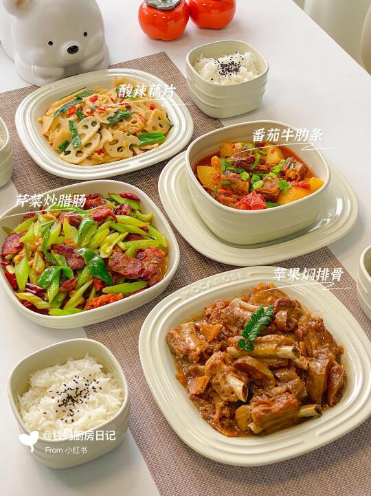 ❤️星期三:番茄牛肋条+苹果焖排骨+芹菜炒腊肠+酸辣藕片