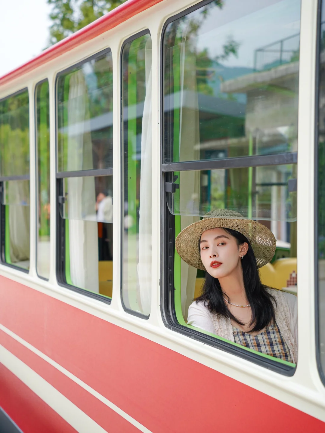 ✔湔江小火车:坐在靠窗位,侧拍低头看风景的样子超好看~也可以在停靠点,探出头拍,超有故事感!!