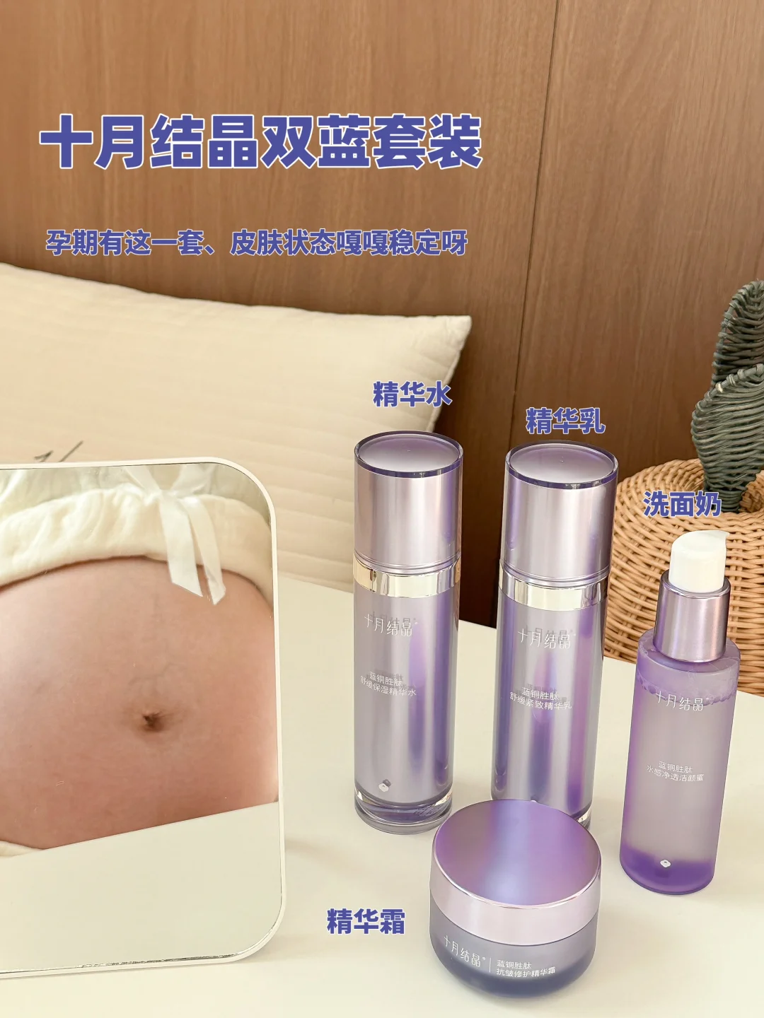 整套孕妇护肤品都添加了蓝铜胜肽和蓝藻因子
