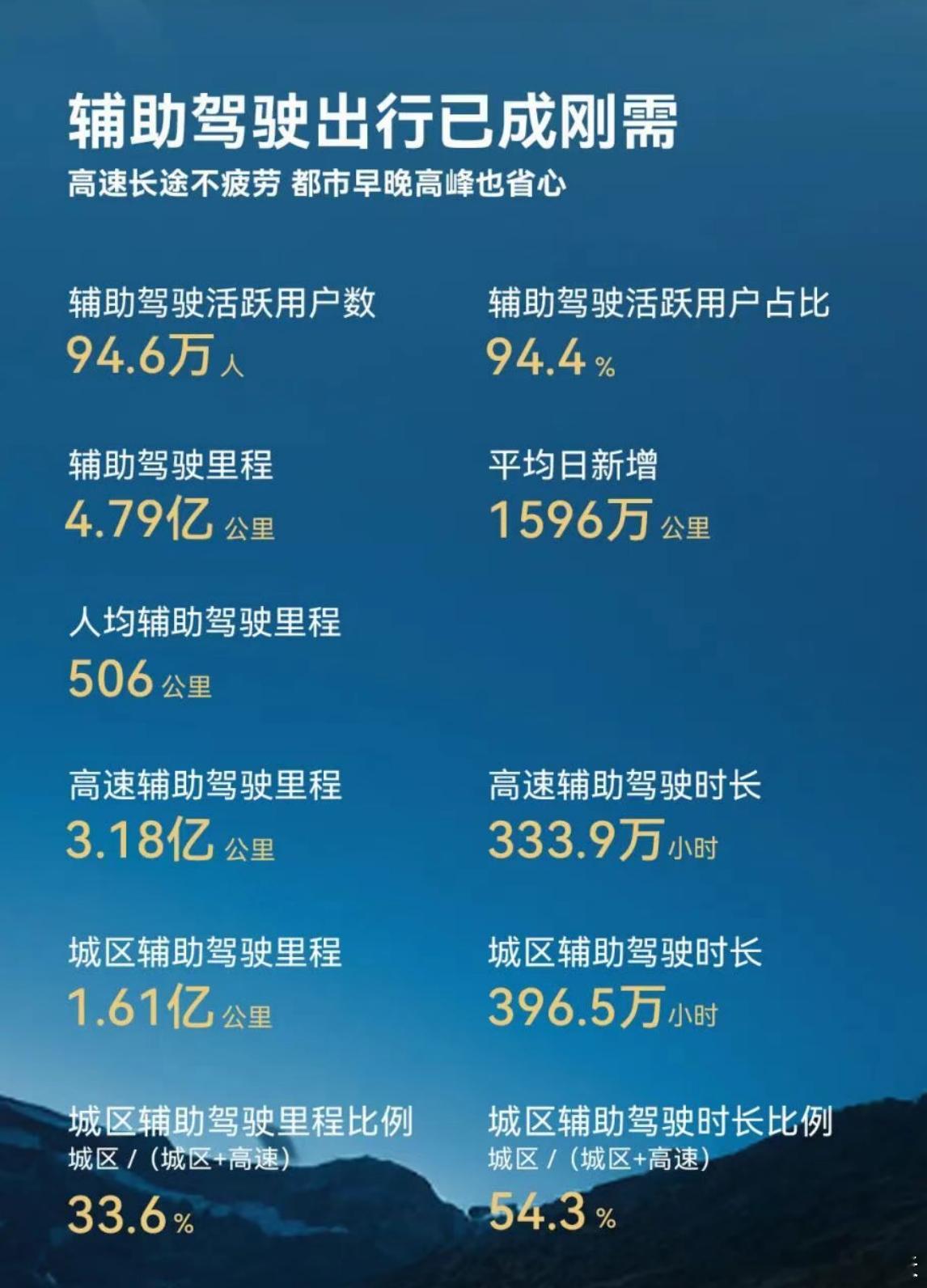有时候我想,与其看乱七八糟的「智驾大赛」,不如看看各家的「辅助驾驶出行报告」 —— 用户活跃度高的,说明实际用的人多;而用的人多,往往也意味着它的体验更受认可、更好用。