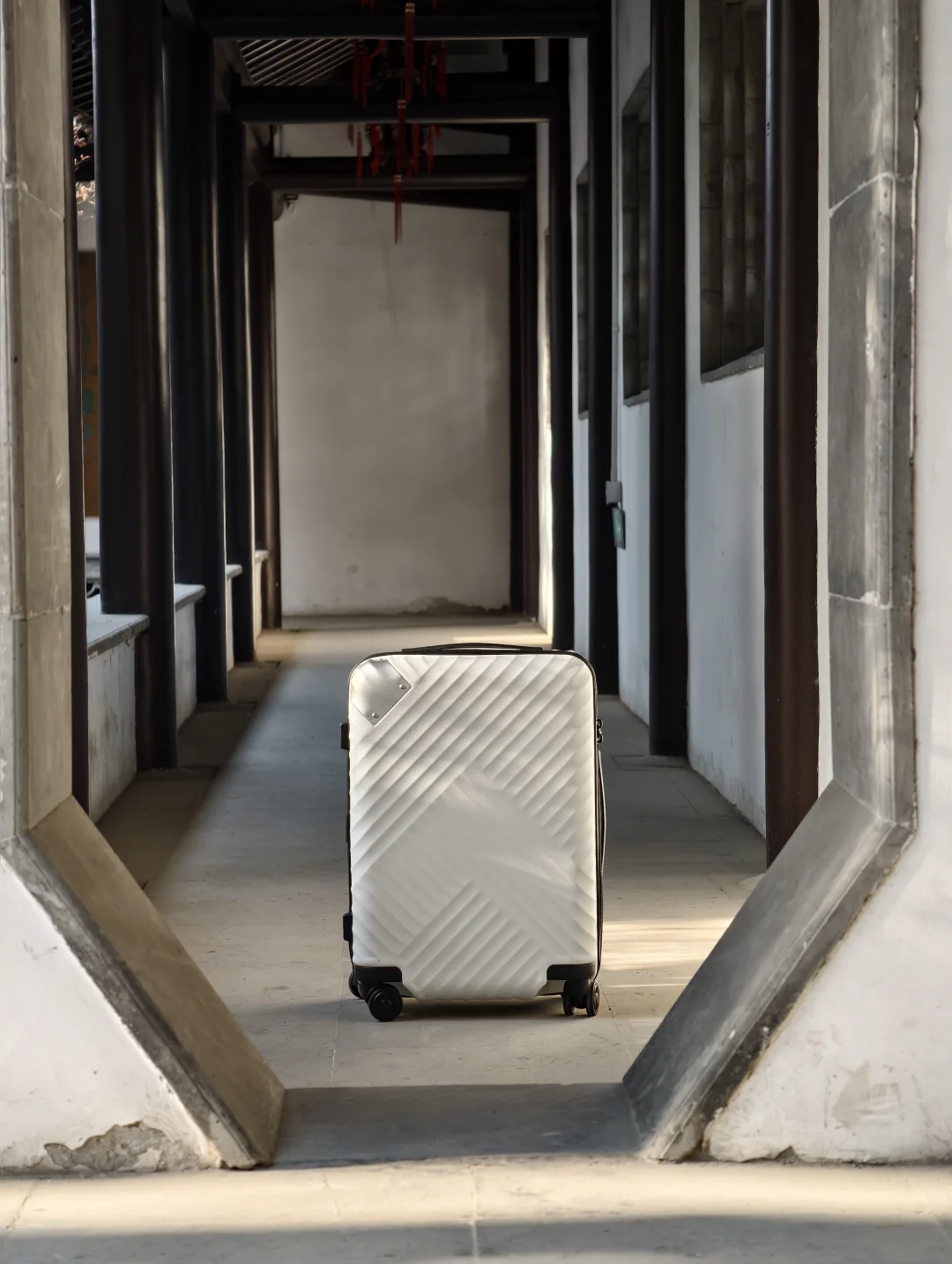 白色的颜值超高,和箱子一起拍照很出片