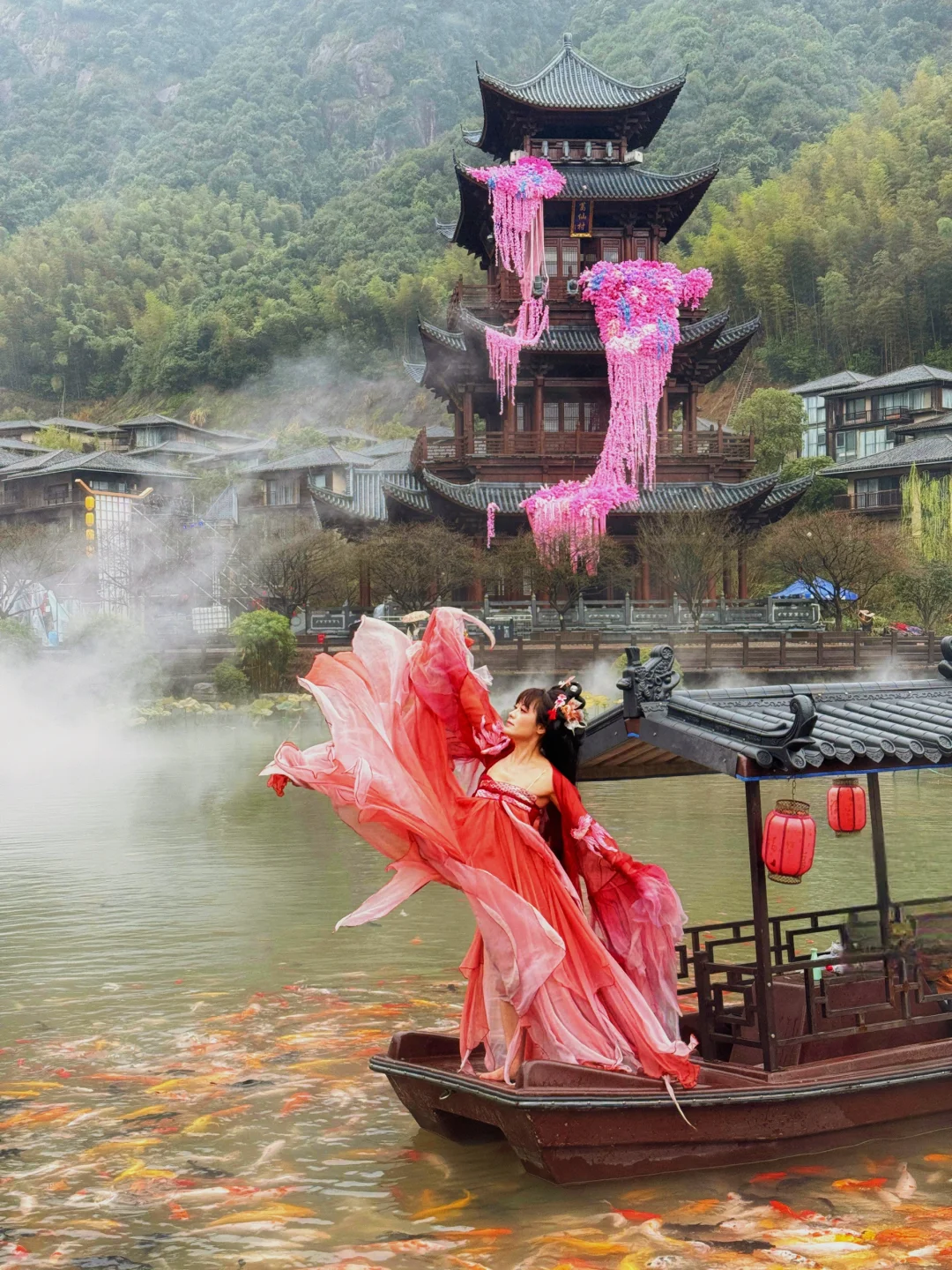 现实版的千与千寻村庄,最近是葛仙村春游记,可以邂逅一日村长,肌肉男神担任一日村长作为景区NPC,送花、公主抱、合影等,十二花神巡游、花漾市集等,各种非遗表演非常精彩