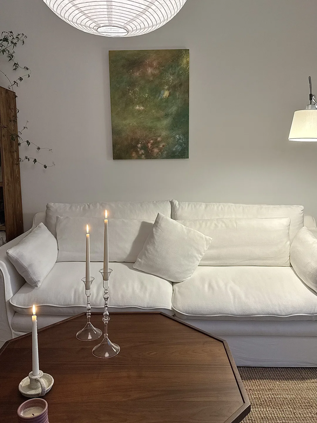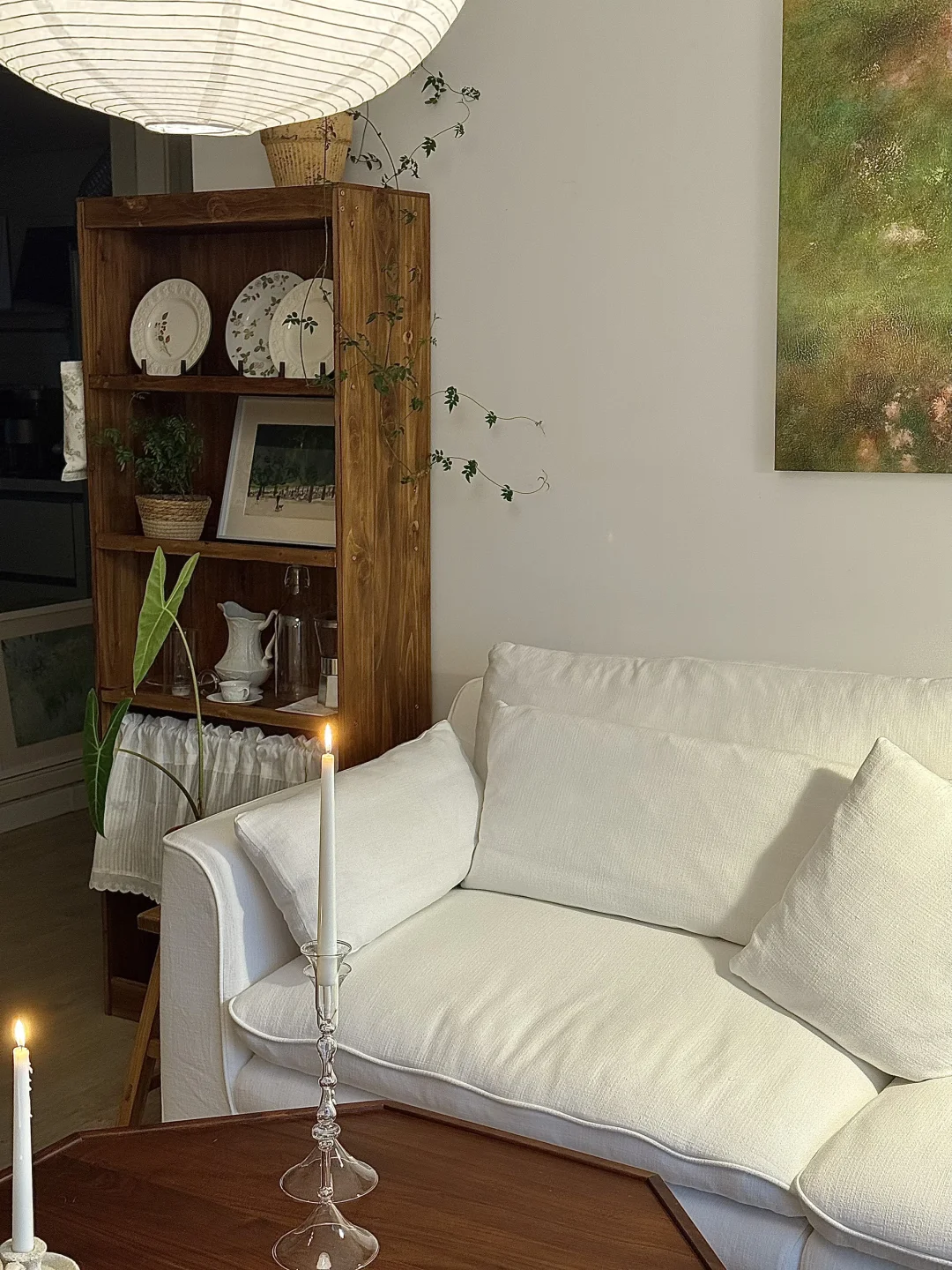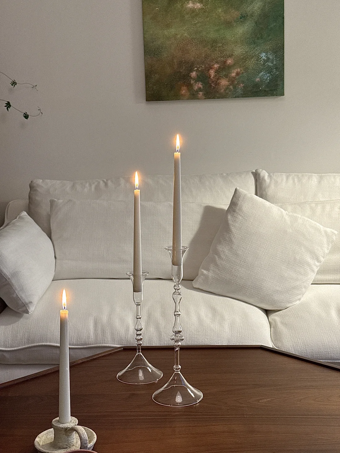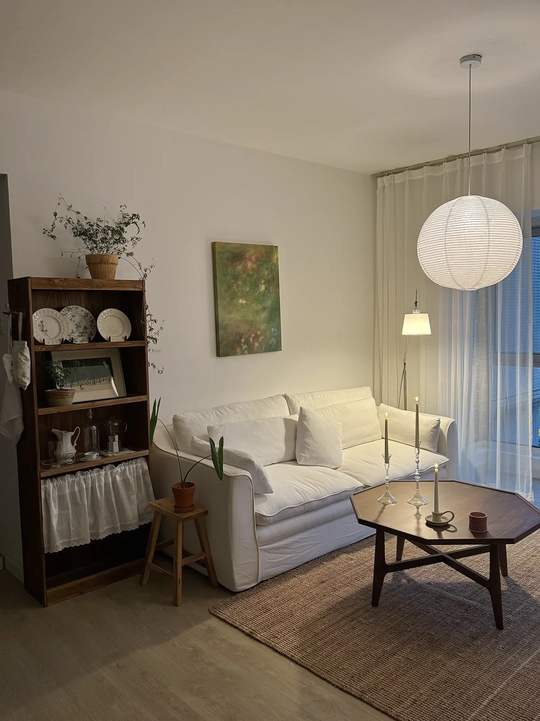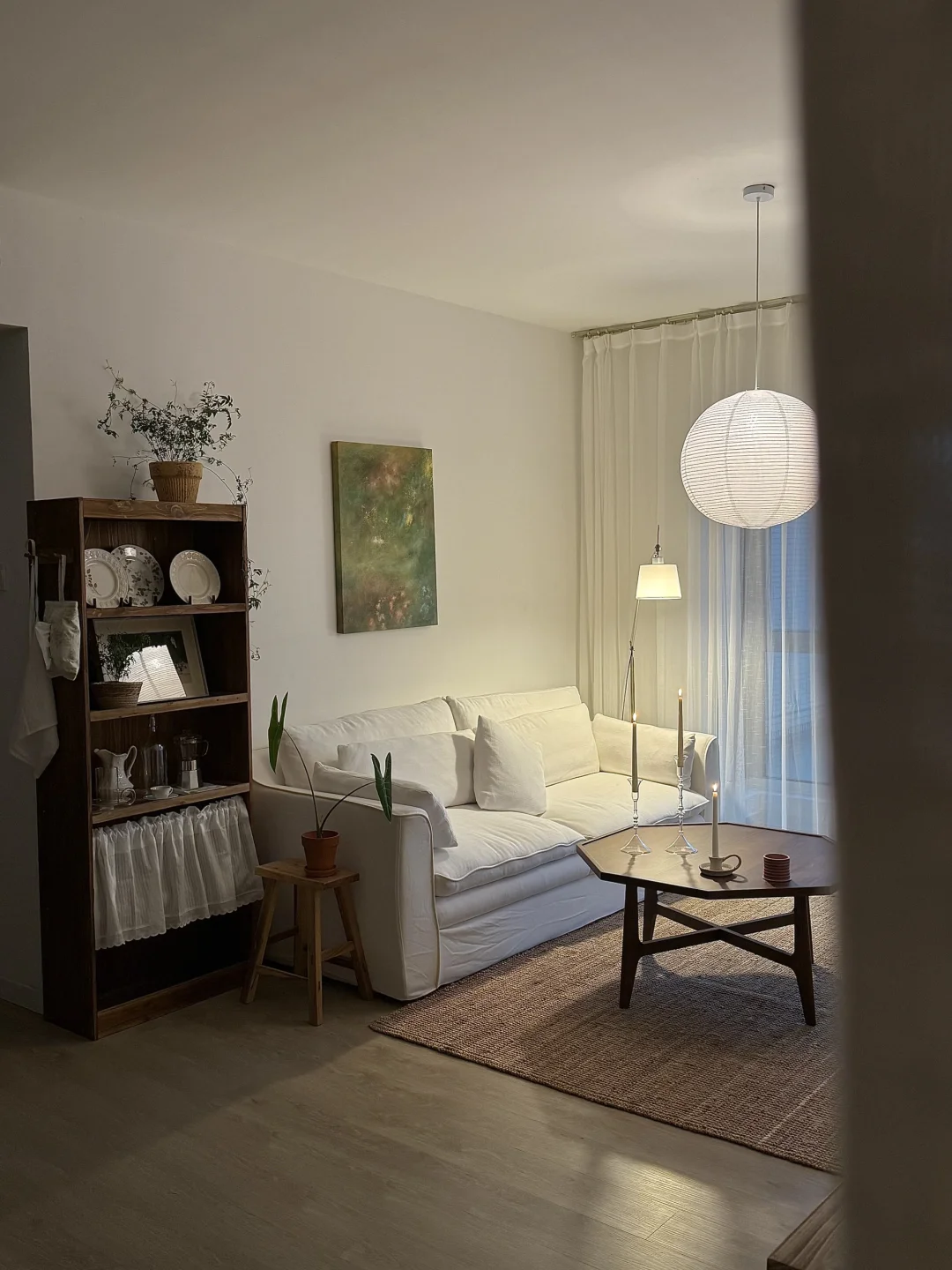 在傍晚的家里 看着我温暖舒适的客厅 天色渐渐暗下来 打开灯 点燃蜡烛 柜子里摆满自己喜欢的东西 不得不拿出手机默默记录下这一刻