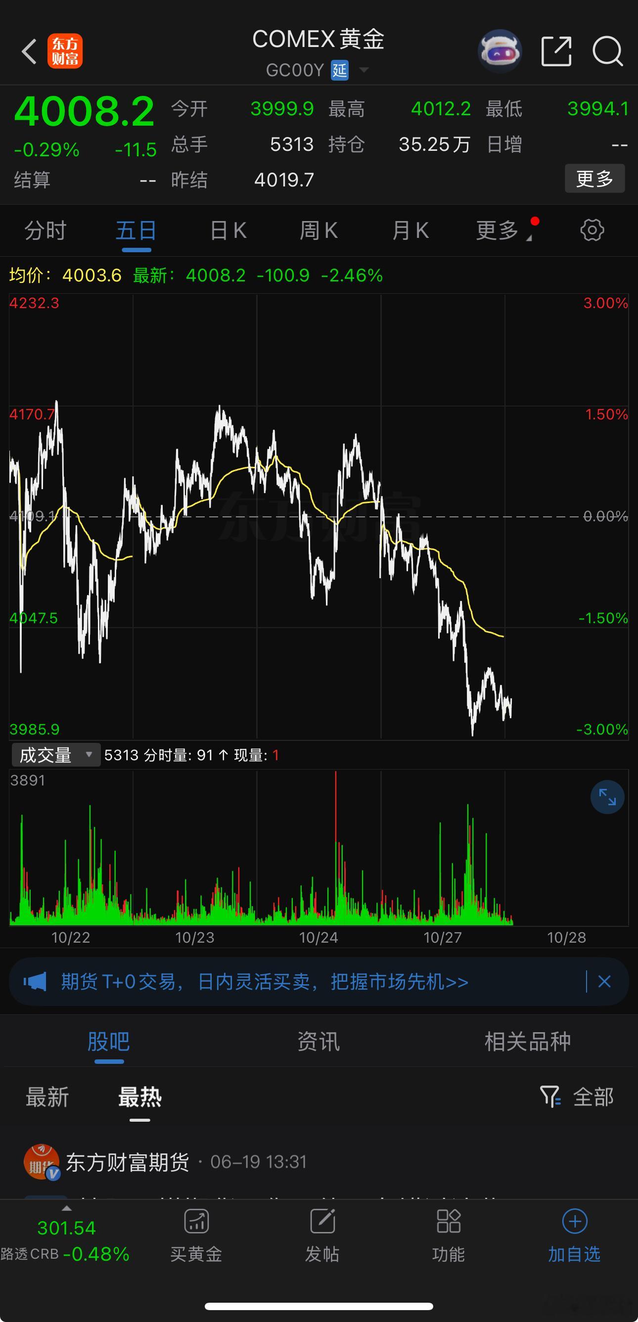 ‼️美东时间10月27日,国际贵金属期货大幅收跌超3%。COMEX黄金期货跌3