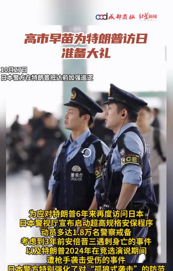 高市早苗给到访的特朗普准备了一份大礼,但恐怕特朗普反手给她的是紧箍咒: 10月27日特朗普如约访日,为了这次会面,日本警视厅直接拉满安保,1.8万名警察全员出动,屋顶防狙击、街头查可疑人员,连社交媒体都实时监控,就怕出“孤狼式袭击”这类意外。 高市早苗也挺上道,准备的东西也是诚意十足:采购福特皮卡、加大美国大豆和液化天然气进口。 但是笔者认为,高市早苗来自美国的“紧箍咒”恐怕已经在准备中了。 毕竟俩人要谈5500亿对美投资细节,而对于这件事,高市之前说要重谈又收回,明显是底气明显不足,怕得罪美国。 而且高市外交经验本就有限,执政基础还不稳,面对特朗普这种不按常理出牌的主肯定是被动的。 更关键的是,美国要日本涨军费到3.5%,高市只敢承诺到2%,按照特朗普之前对待日本的脾气,这分歧迟早要爆。 说到底,美日同盟看着铁,实则美国永远把自己利益放第一位,高市想靠送礼换平等对话,恐怕没那么容易。 高市早苗不是孙悟空,紧箍咒对她来说,戴上了可能就摘不掉了,且看她到底怎么应对特朗普吧! 你怎么看待这场美日交流?高市早苗有胜算吗?