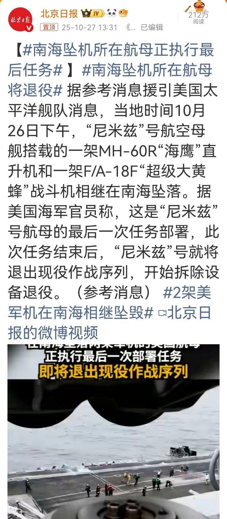 南海坠机所在航母正执行最后任务他们航母不会某天也敢个坐滩吧