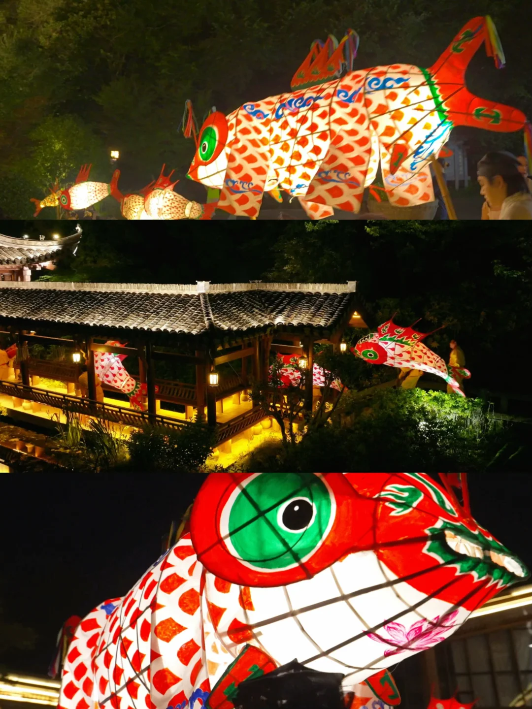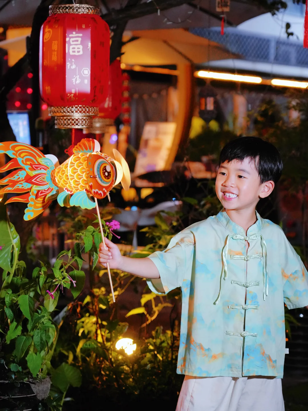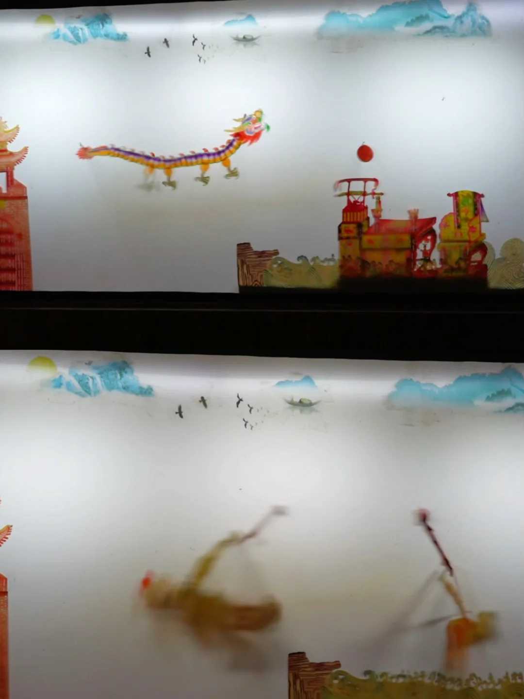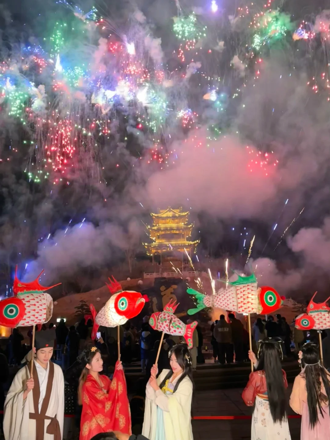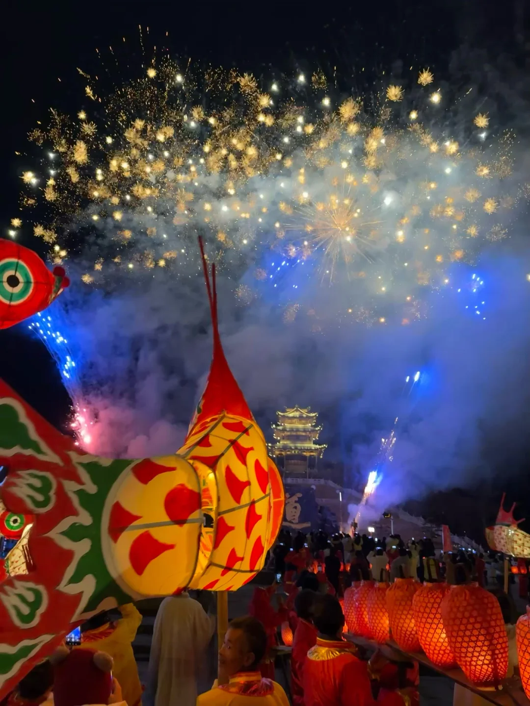 晚上还能舞鱼灯,坐金龙巡游,看皮影戏,打铁花和火壶烟花,感受非遗文化的浪漫