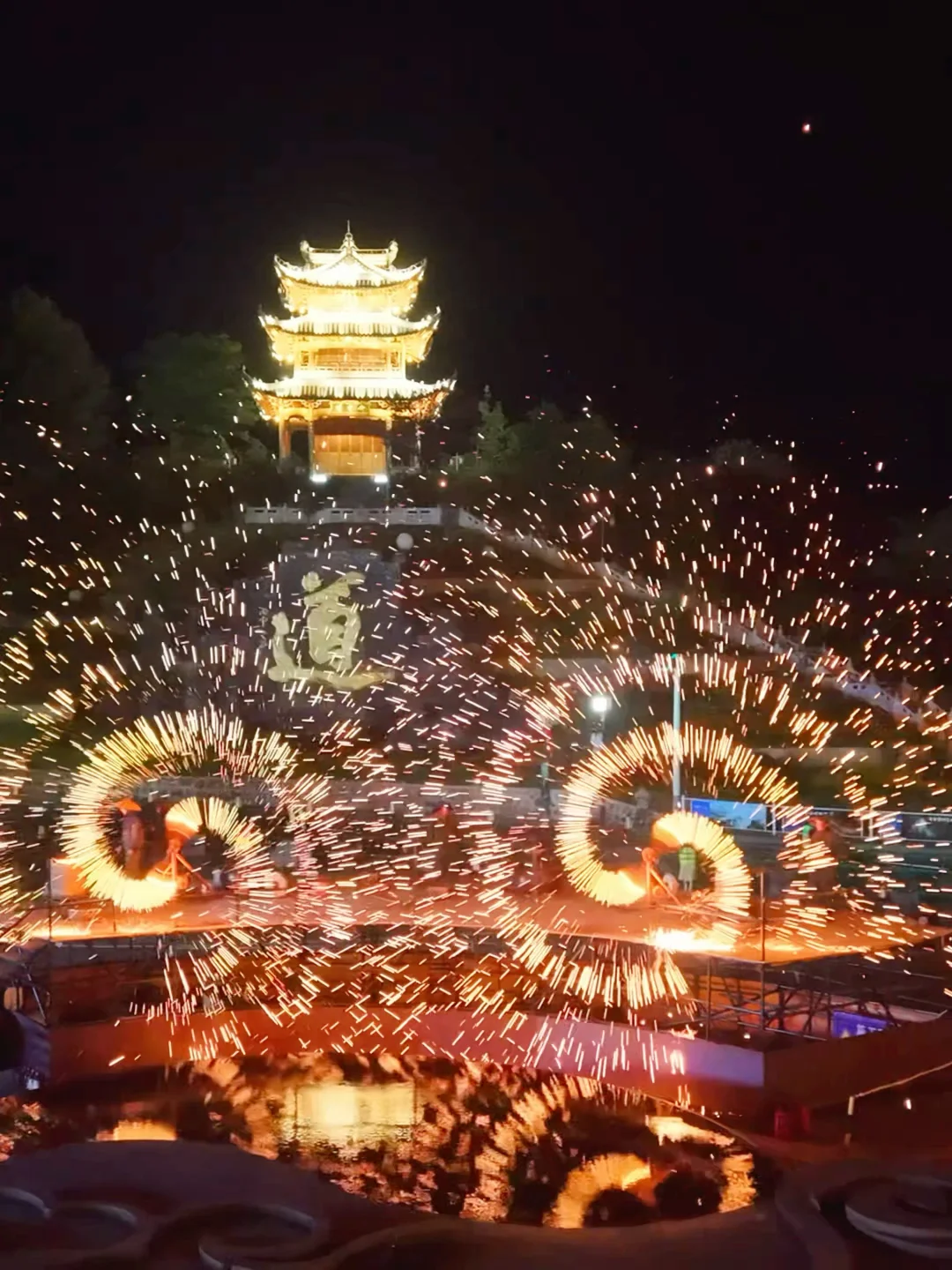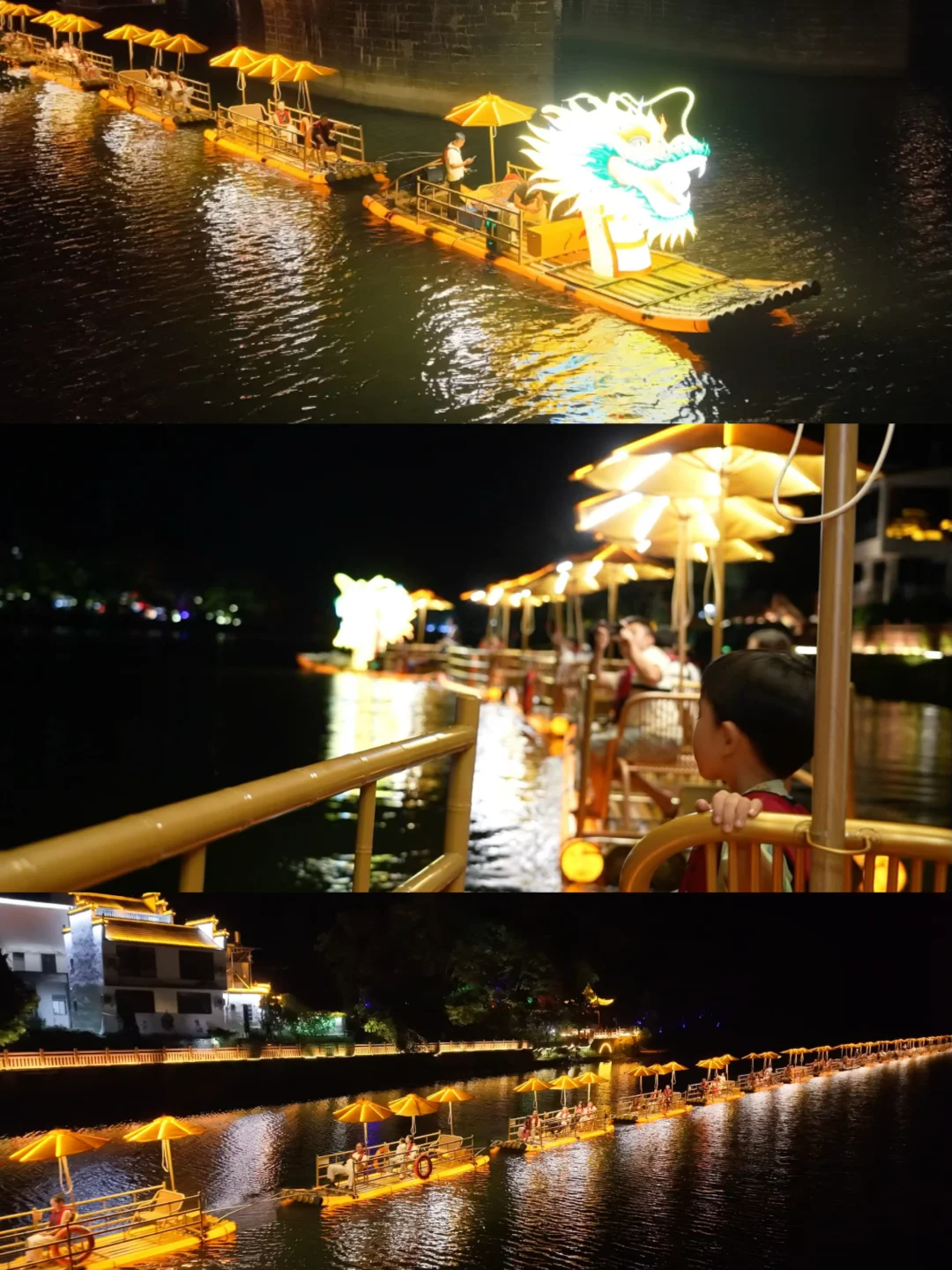 入住齐云山度假酒店-逍遥街(体验修仙活动)-非遗手作-横江山水竹筏-皮影戏18:30-横江舞金龙19:30-非遗炭花舞20:05-鱼灯巡游20:40-打铁花21:30-火壶21:35-烟花21:37