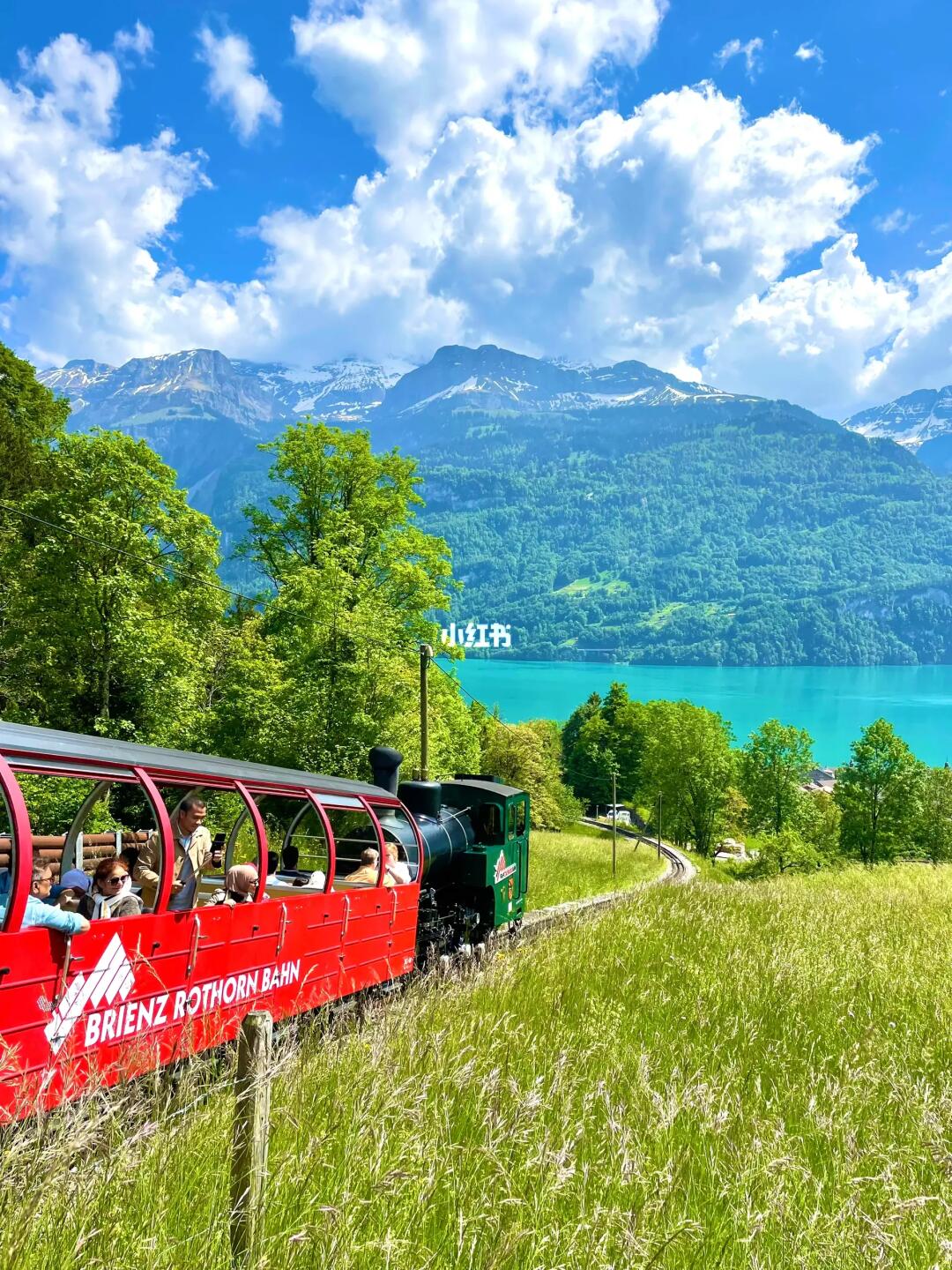 去瑞士一定要去坐小火车,穿梭在雪山草甸山庄之间