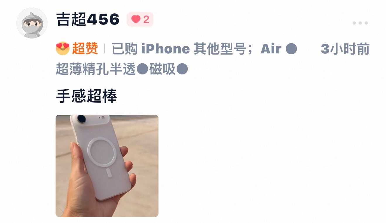 超轻超薄带磁吸,适合超薄的Air手机[嘻嘻]白色、半透双色可选,还有大孔和精